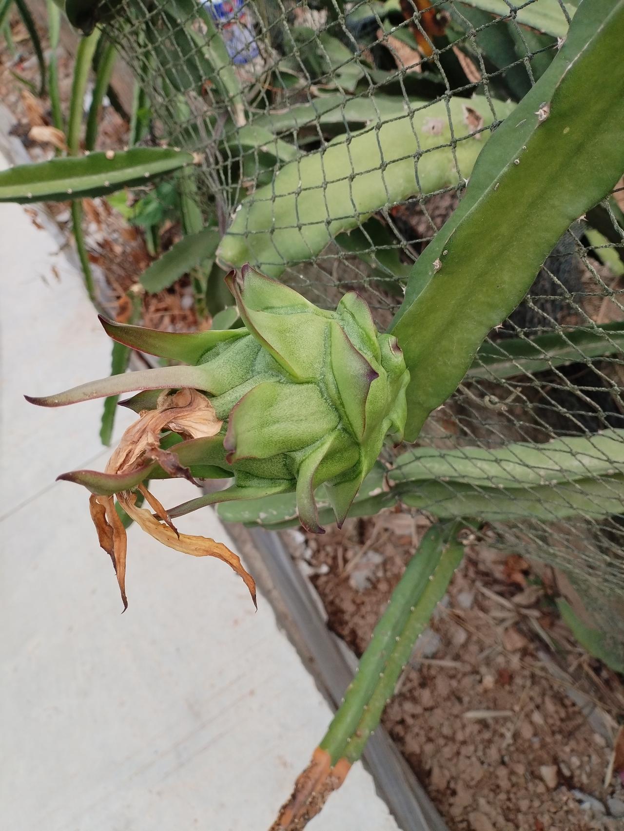 第一次见没成熟的火龙果,感觉挺好看的!