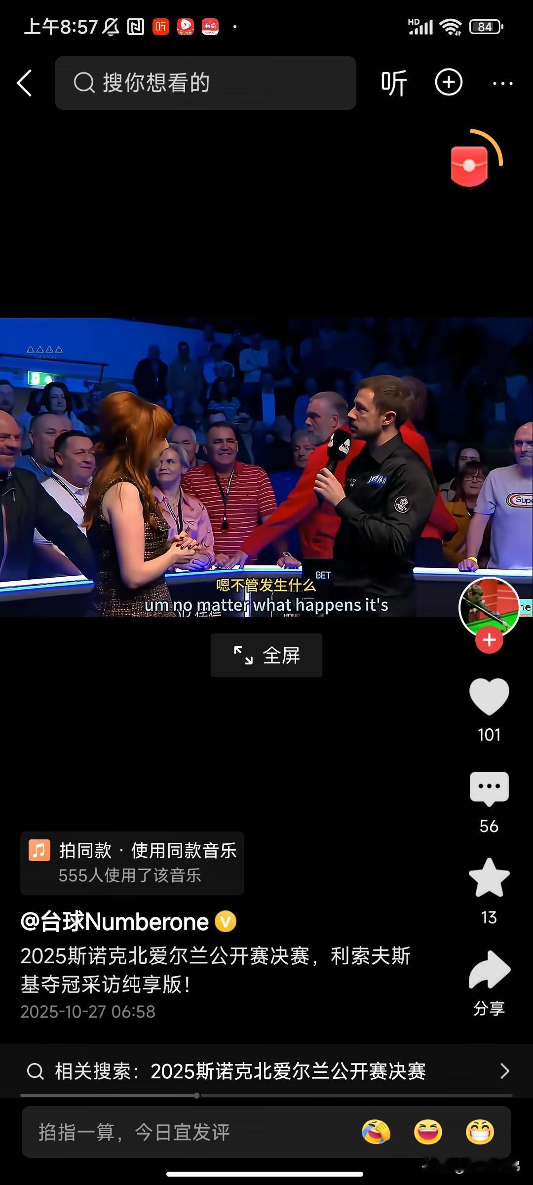 小司机终于拿到职业生涯首冠。 昨天熬夜看了斯诺克爱尔兰站的决赛,没有别的,想看看小司机能不能拿下职业生涯首冠。 小司机也算是个悲壮人物,进入职业15年来没有拿过一个冠军,只拿了六个亚军,他的比赛风格以莽著称,是不计后果的进攻,这种打法注定他拿不到更多的冠军。 不管昨晚是不是小特防水了,小司机最终是赢了,不知道为什么他哭的那一刻,我也是眼含泪水,或许是一种共鸣吧,共鸣一直在努力,却没有被认可的那一段人生。