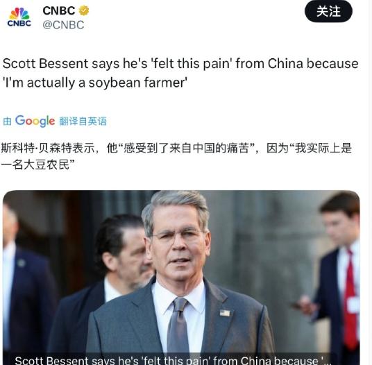 关于贝森特的言论,一网友评论很透彻:玩大豆期货吧[抠鼻]