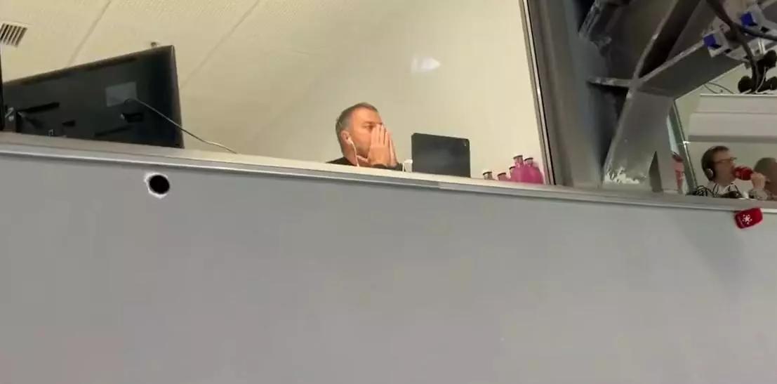 西班牙国家德比,由于停赛,巴萨主帅弗里克无法坐在教练席上。他将临场指挥权交给了助教马库斯·佐尔格,自己则前往伯纳乌的一间广播解说室,通过电视屏幕、电脑和电话远程观战并指挥。 有趣的是,他的位置正好夹在加泰电台RAC1解说员琼·玛丽亚·普和皇马死忠球迷、西班牙国家电台SER评论员托马斯·龙塞罗之间。弗里克看到费尔明进球时激动庆祝,但也必须忍受周围皇马球迷的不友善举动。