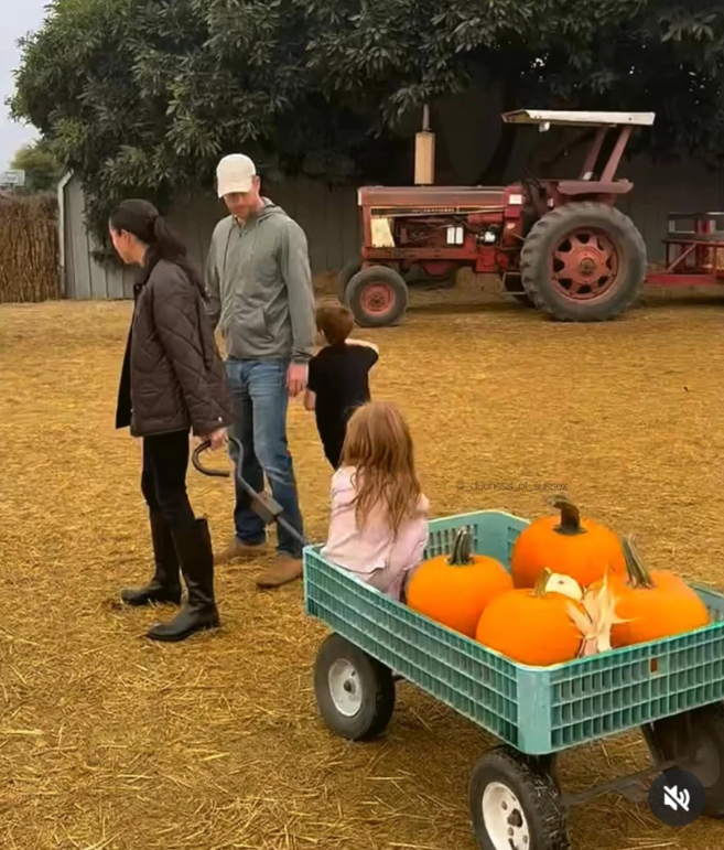 哈里一家现身农场,莉莉贝特金发惹眼,梅根妈妈也来了!近日哈里梅根夫妇带着一儿一女到农场收南瓜,估计是为万圣节做准备,毕竟西方很重视这个节日。 他们一家四口也是难得同框,不过没有一张正脸照,这也是梅根的风格,为了保护孩子们,晒照只晒背影照或者黑白照,好在这次是彩色照,小孩儿也玩得开心。 值得一提的是哈里女儿,穿着一身粉色秋衣秋裤,梳着长发披肩的发型,这背影超像堂姐夏洛特公主,然而同样是查尔斯国王的孙女,命运却大不同。