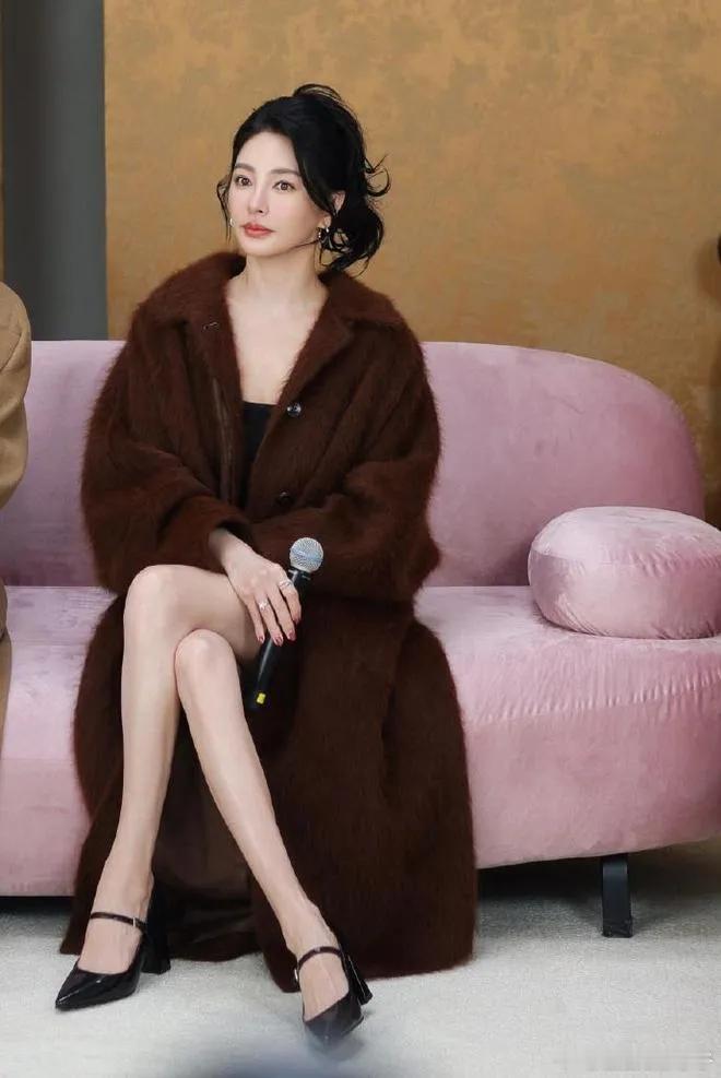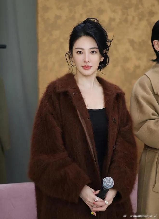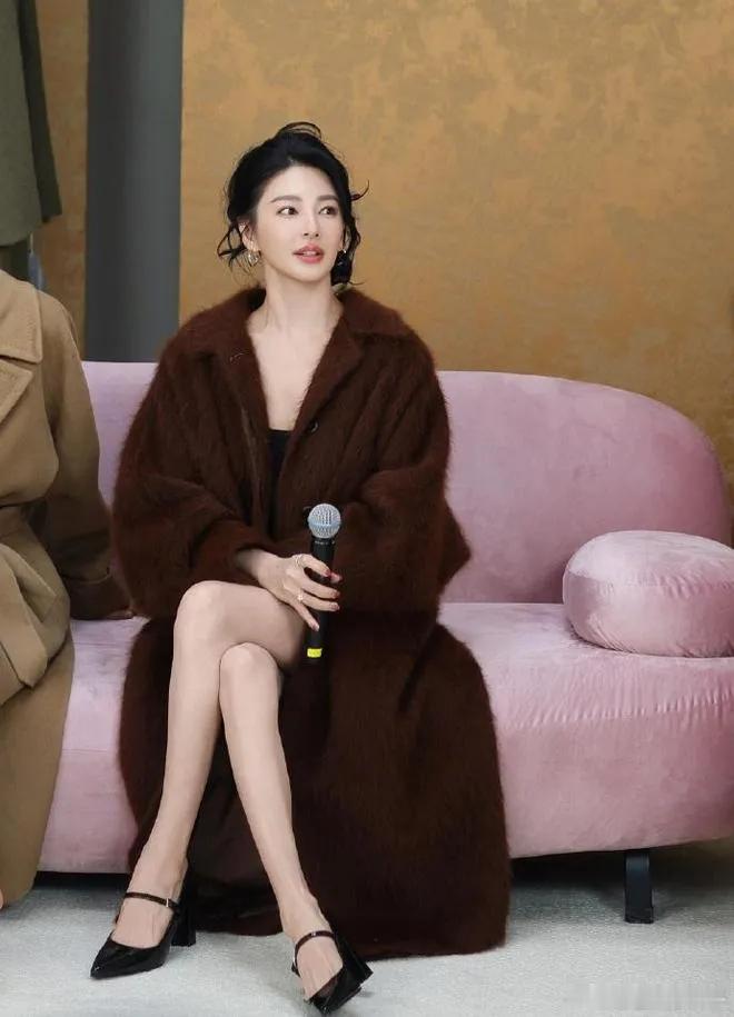 穿棕色icon毛绒外套 + 短裙秀大长腿,气质迷人!