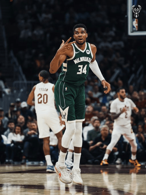 赛后,雄鹿官方晒出一张字母哥的赛场照,并附文:“阿德托昆博本赛季的三分命中率达到67%!”