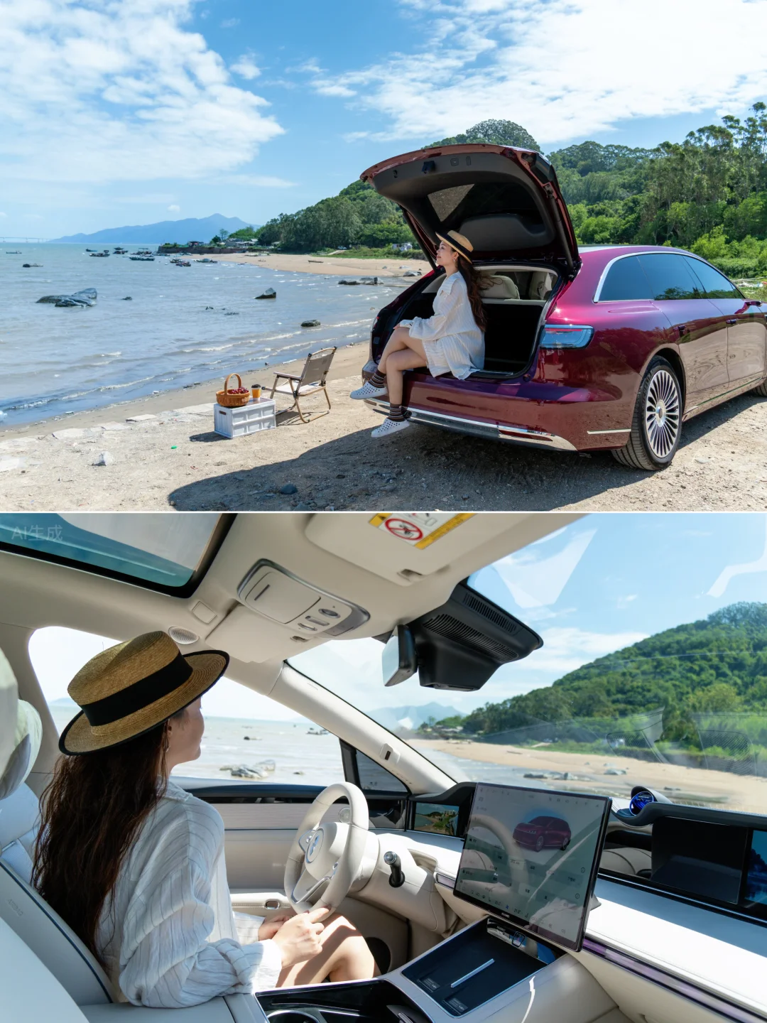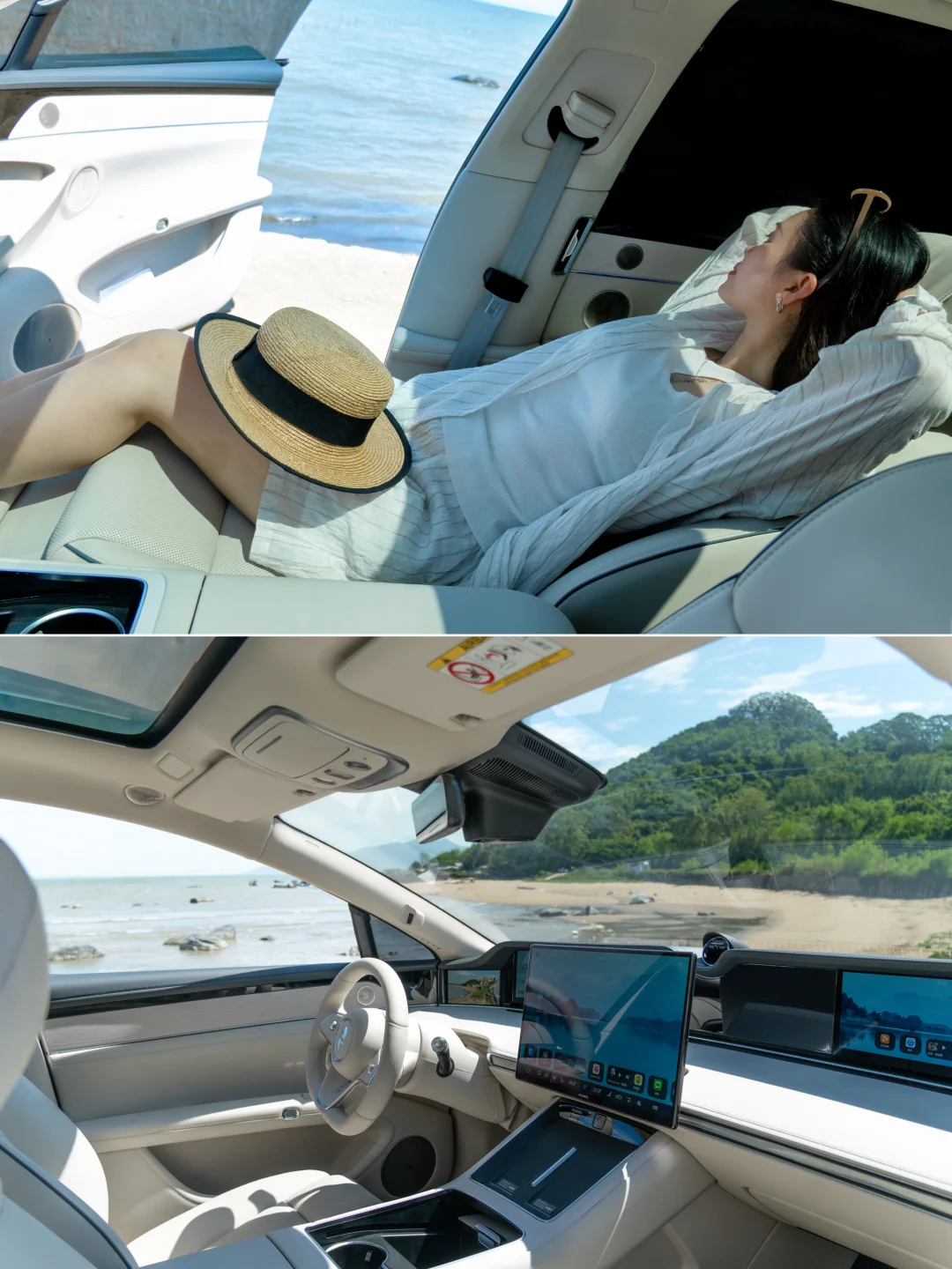 从冷暖箱中取一杯饮品,打开副驾零重力座椅,听着窗外海浪拍打的声音,此刻的美好不言而喻。