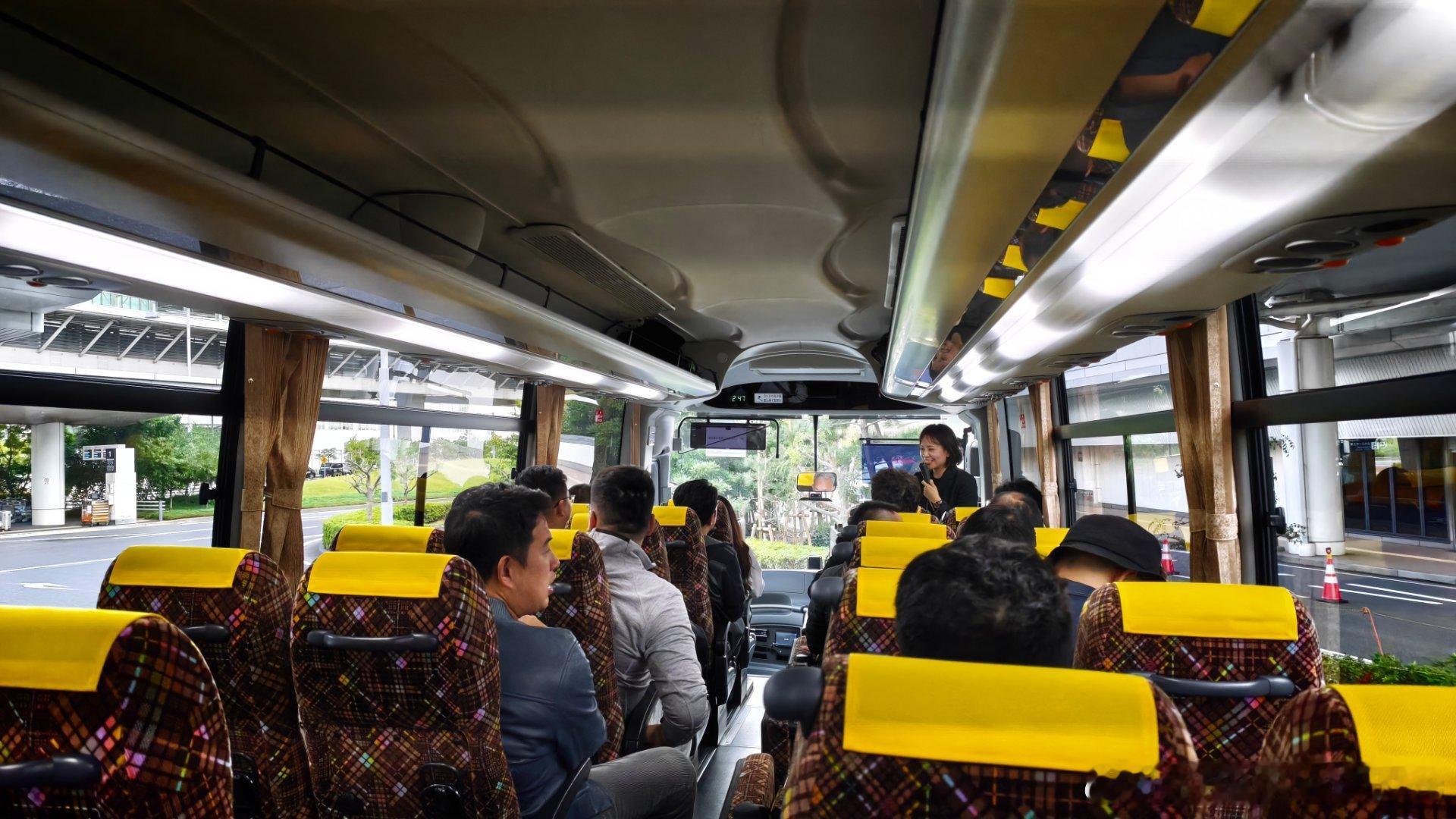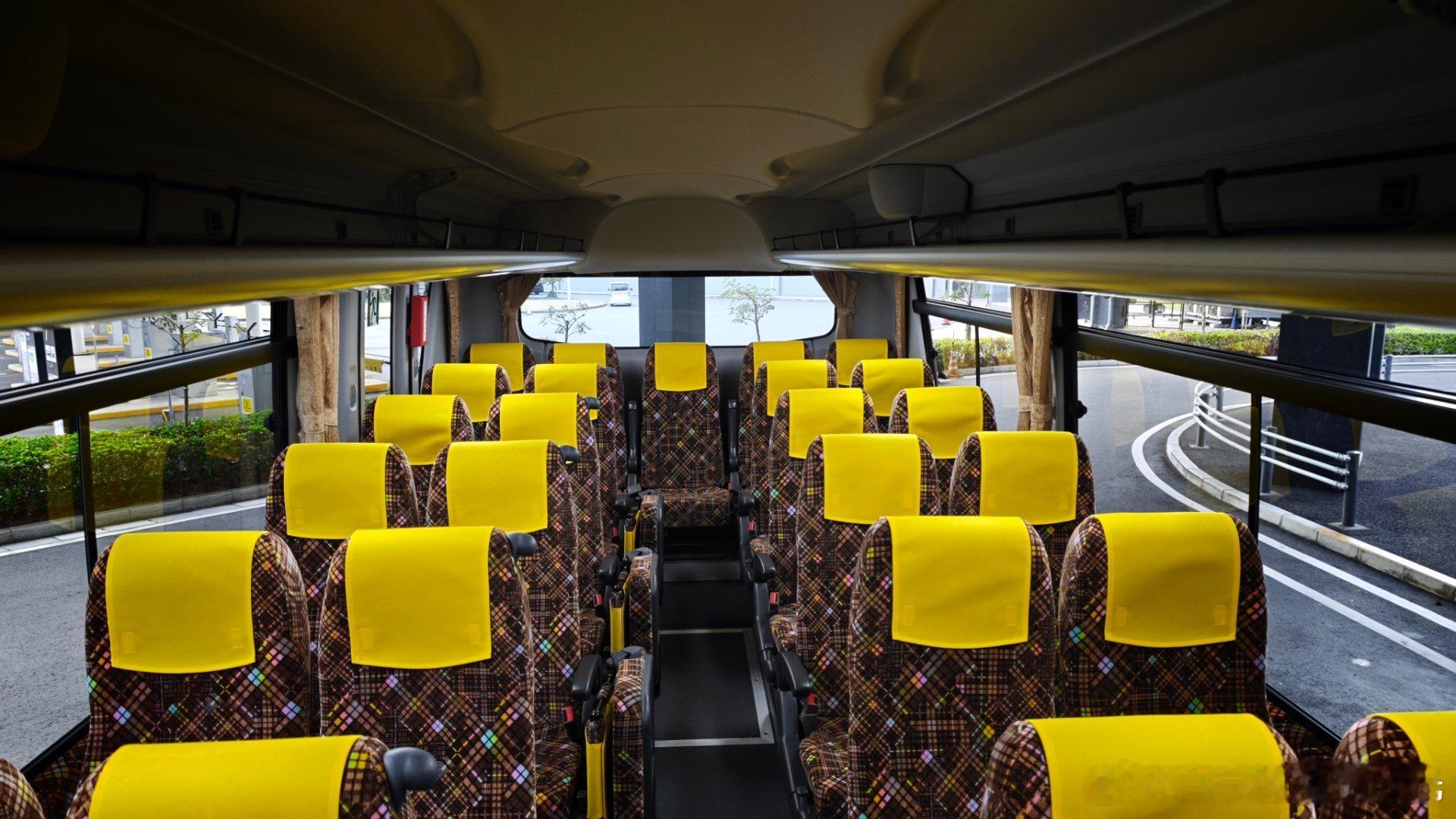 日本的大巴永远是干干净净看不出新旧。这日野还保持着能开窗和过道加座的传统,标明公司身份的线路牌一直也是个传统。左右座的安全带用不同的颜色,防止用错。每个座位带折叠背架和充电口。