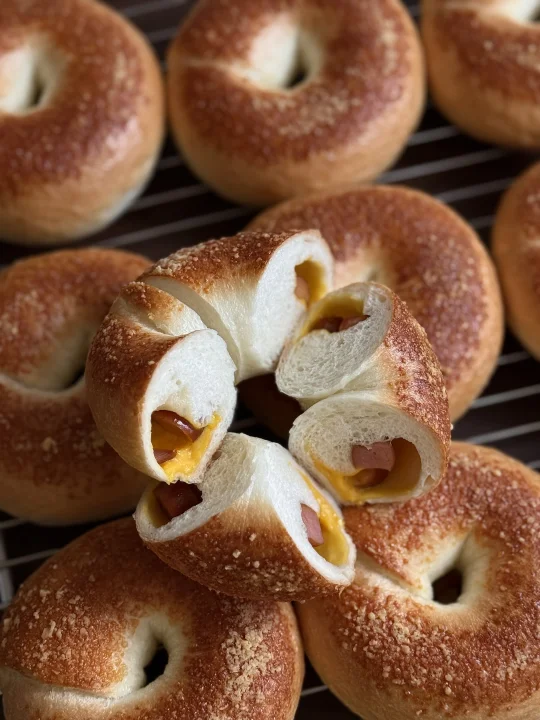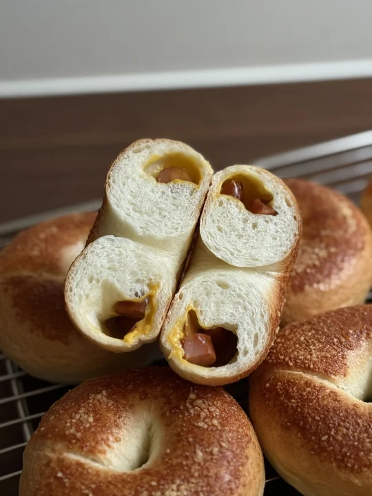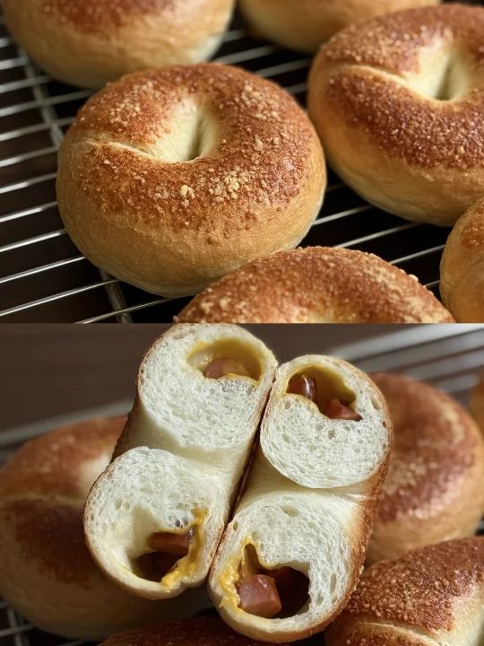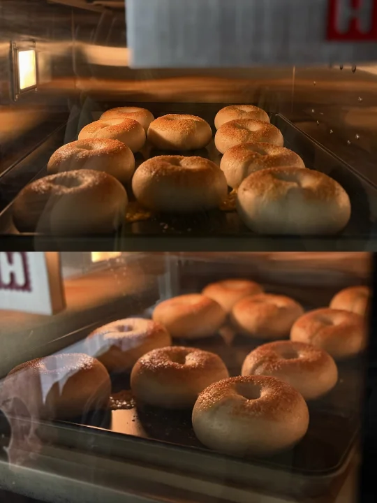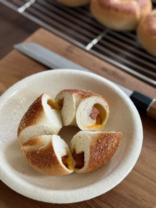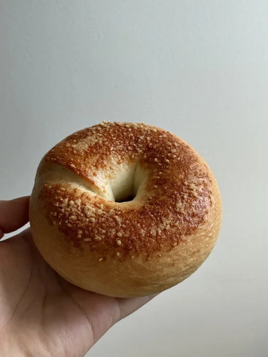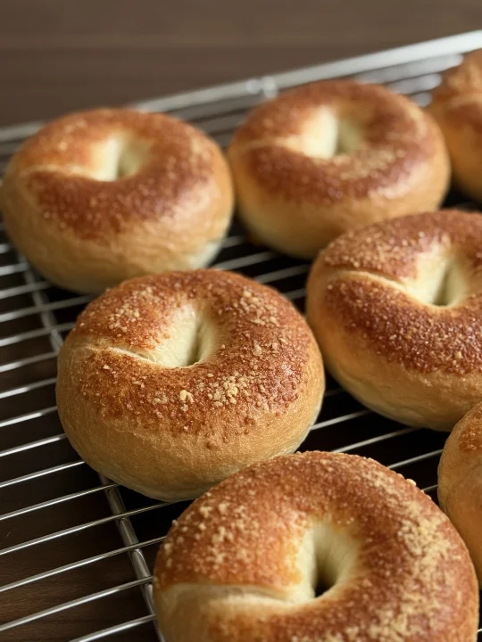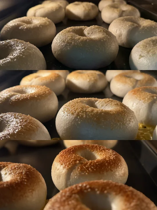 8️⃣ 煮好的贝果捞出来控干水分,表面沾上芝士粉