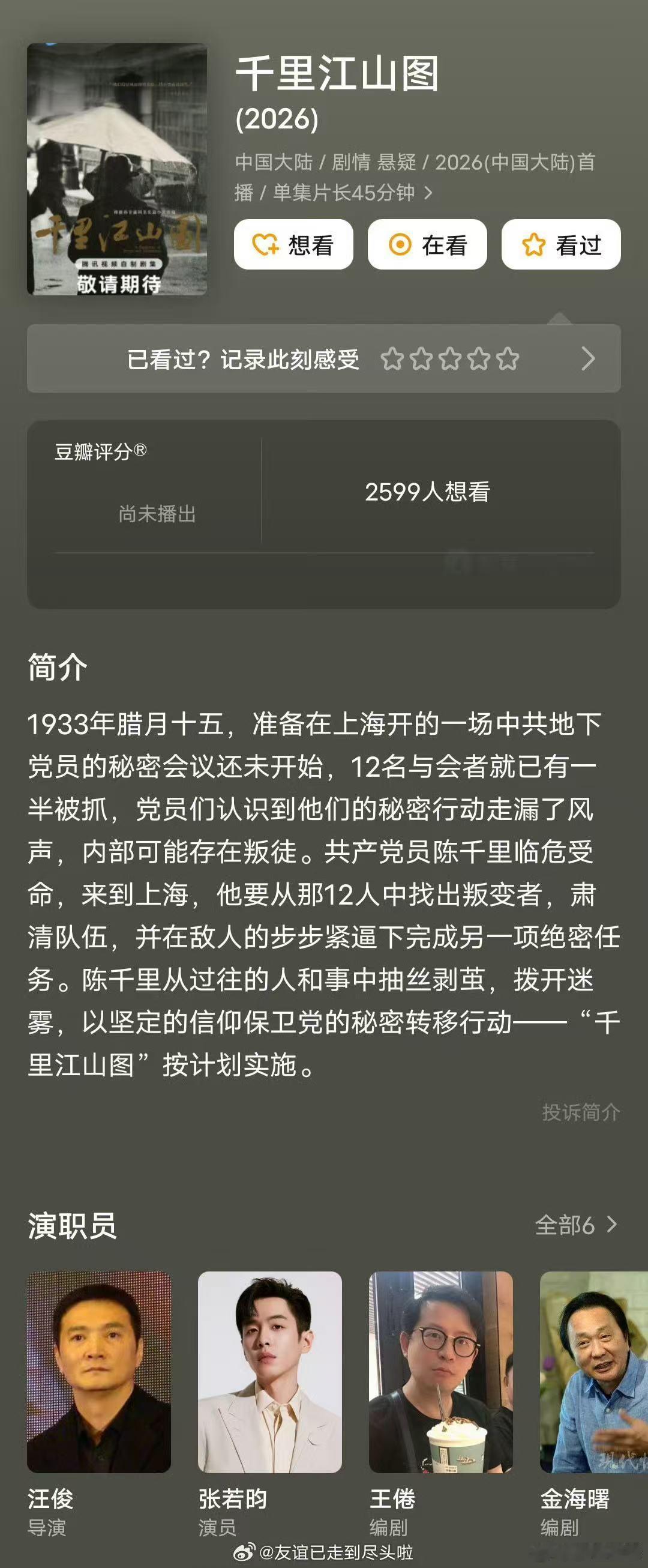 张若昀刘诗诗严浩翔林凯千里江山图千里江山图全阵容 张若昀找叛徒的剧情肯定超烧脑,跟着他一起抽丝剥茧太刺激了。