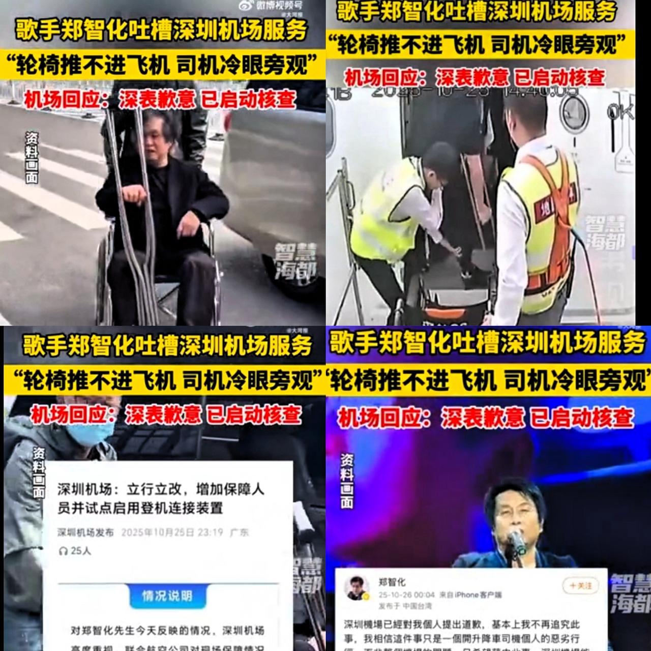 看了完整视频才懂,郑智化说的“连滚带爬”有多离谱!明明是两名工作人员全程搀扶,帮他拄拐、扶着假肢进机舱,哪儿有半分无人管的样子。 20厘米高度差是机场安全规范,怕设备刮碰飞机,这可根本不是“没人性”。 人家工作人员按规矩办事,反而被扣上“冷眼旁观”的帽子,换作谁不委屈? 公众人物发声是该关注无障碍问题,但不能靠夸大事实博同情。人家深圳机场二话不说就开始整改,加人手、上衔接装置,这态度已经够诚恳了 。 比起纠结谁对谁错,更该警惕“情绪先行”的表达。你觉得下次遇到这类事,该先看证据还是听一面之词?