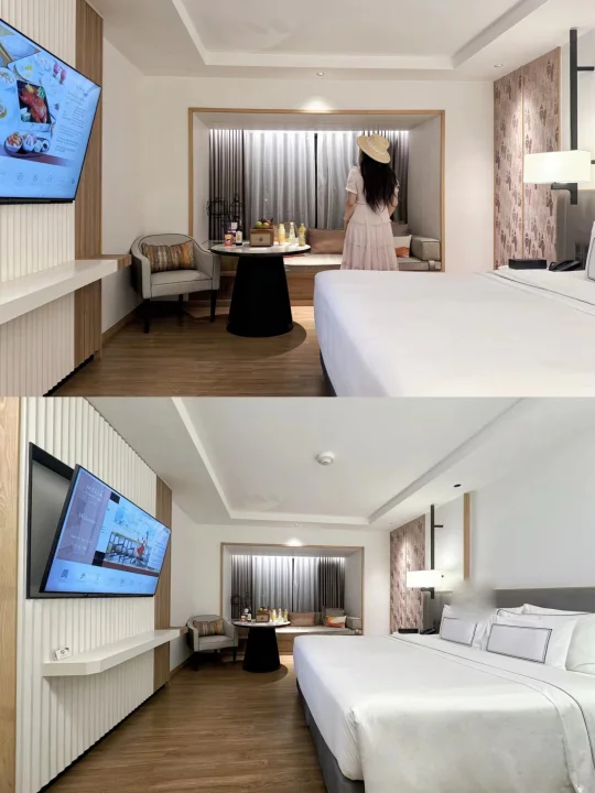 二层泳池氛围感拉满,一楼SPA可放松。顶层Mai空中酒吧最绝,日落浪漫,夜幕下能360°赏清迈天际线,吹风微醺,远离夜市喧闹。