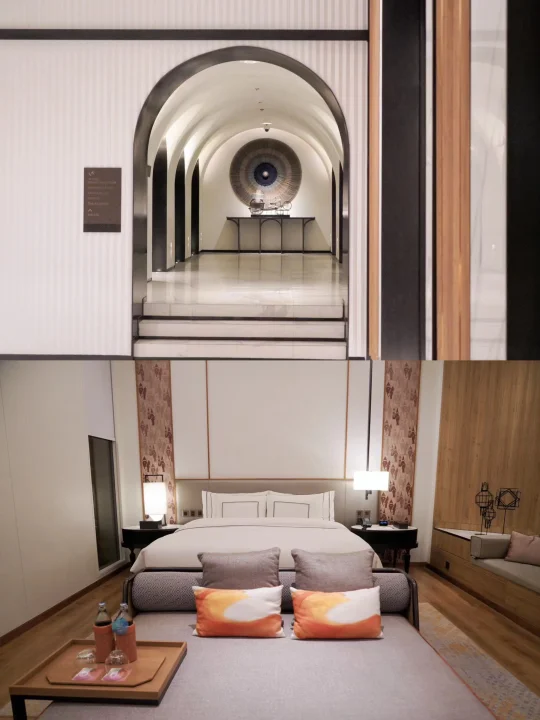 我超爱的清迈酒店,以寺庙为灵感,黑白简约线条搭配对称美学,拱形门贯穿全场。它融泰北风情、西班牙元素与清迈民俗,藤编、木雕点缀其间,如走迷宫。