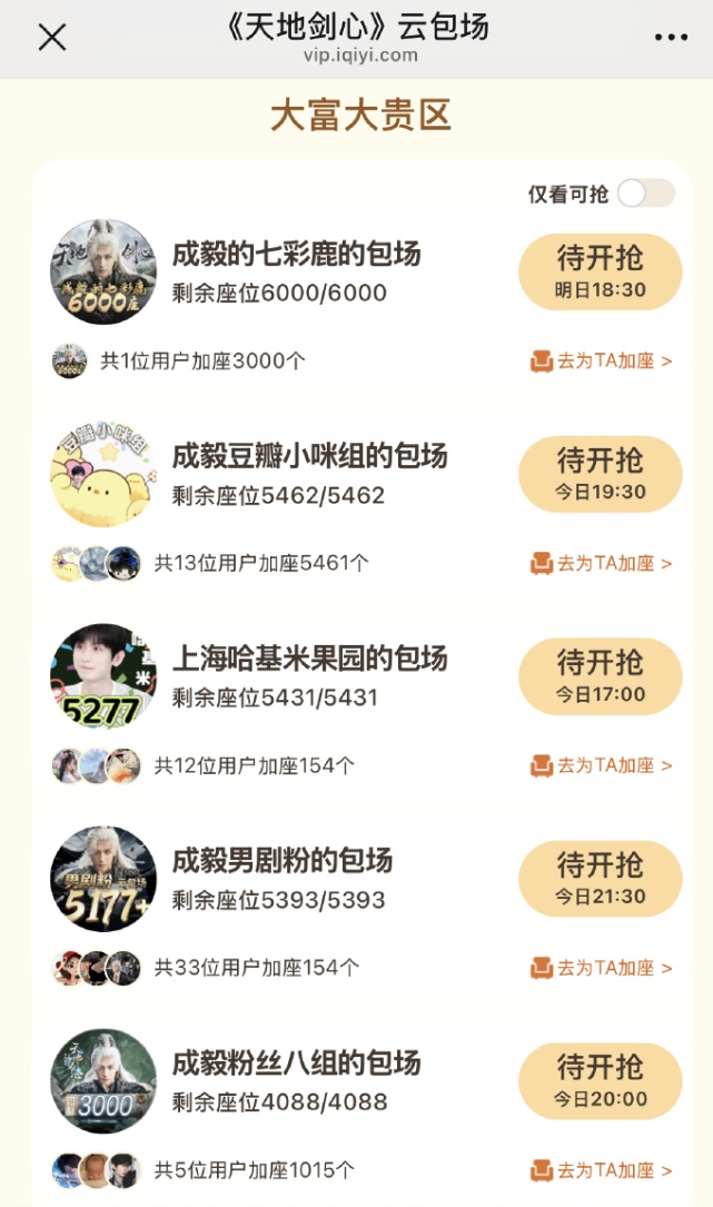 粉丝准备的云包场量确实大,大到根本领不完,6点开的云包场,只需要观看30分钟就能领一个月会员,但是七点半还领不完,谁没有爱奇艺会员,可以去云包场领一个。