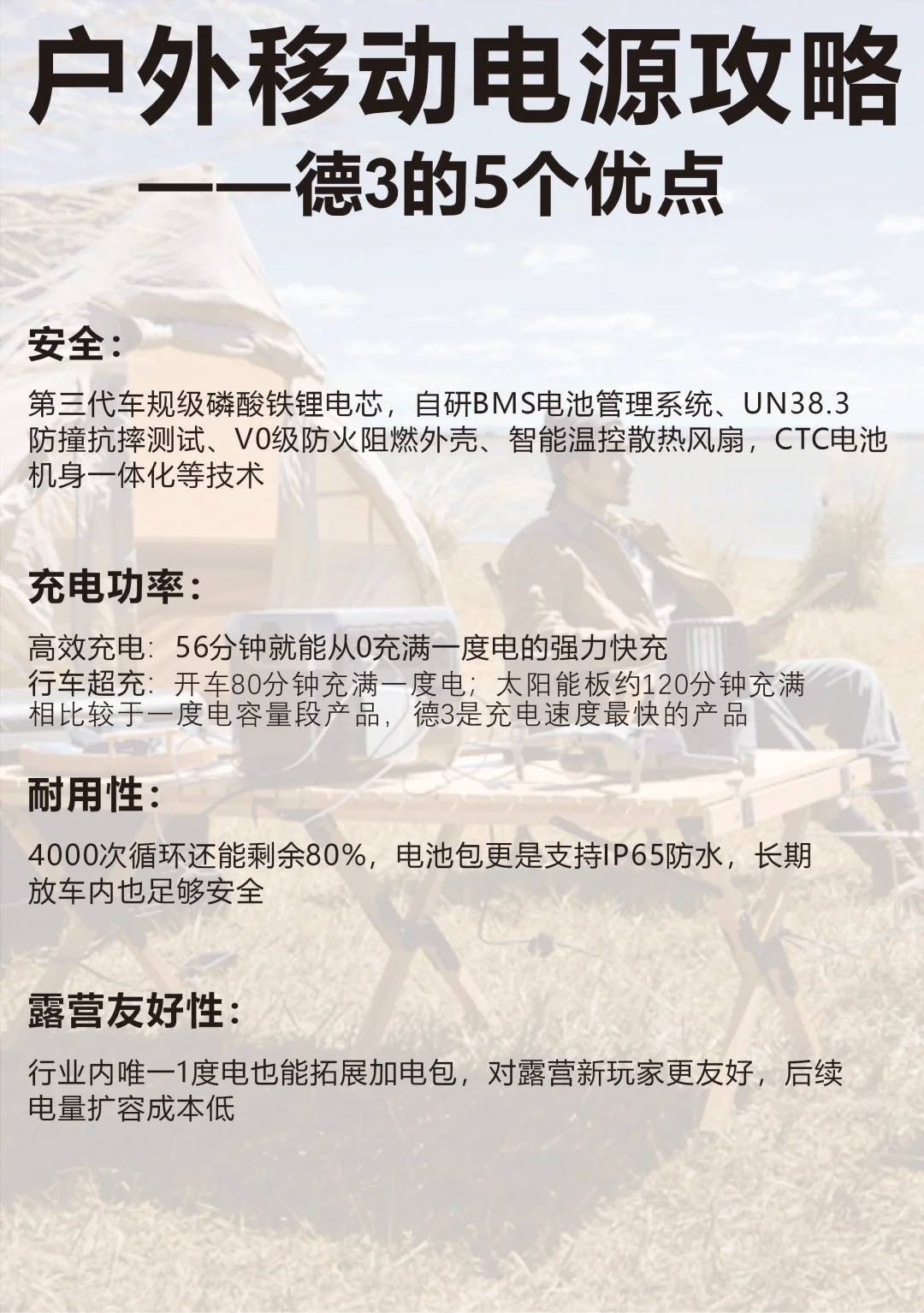 3️⃣ 安心:磷酸铁锂电芯,4000次循环还能剩80%,IP65防水,长期放车里也不怕