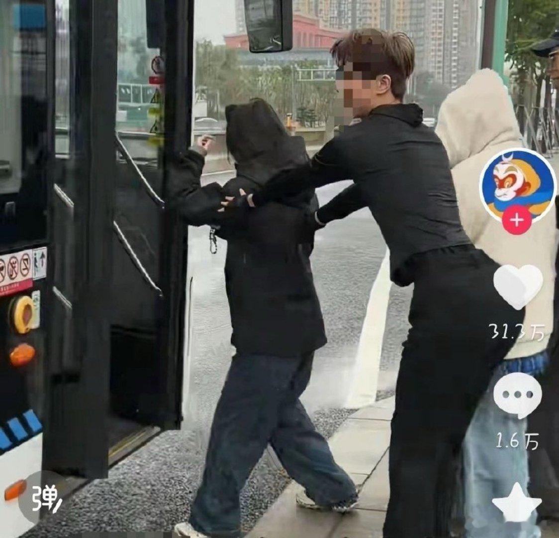 张天爱跟素人合影,胯真的好宽,大宅院似的