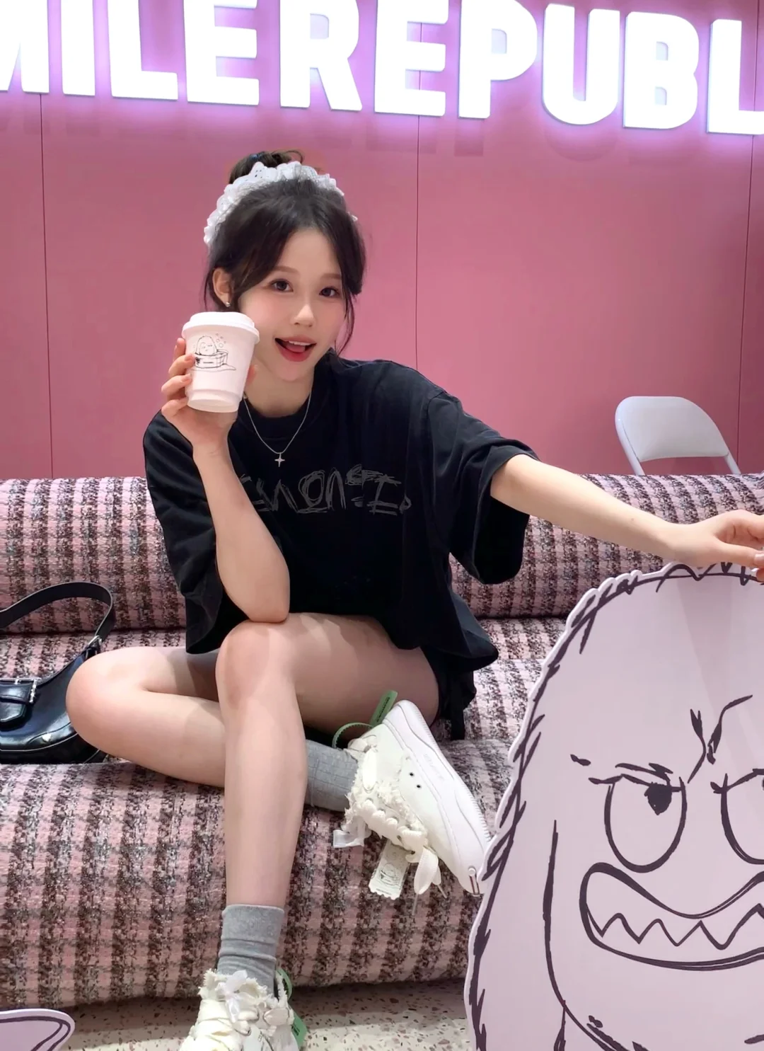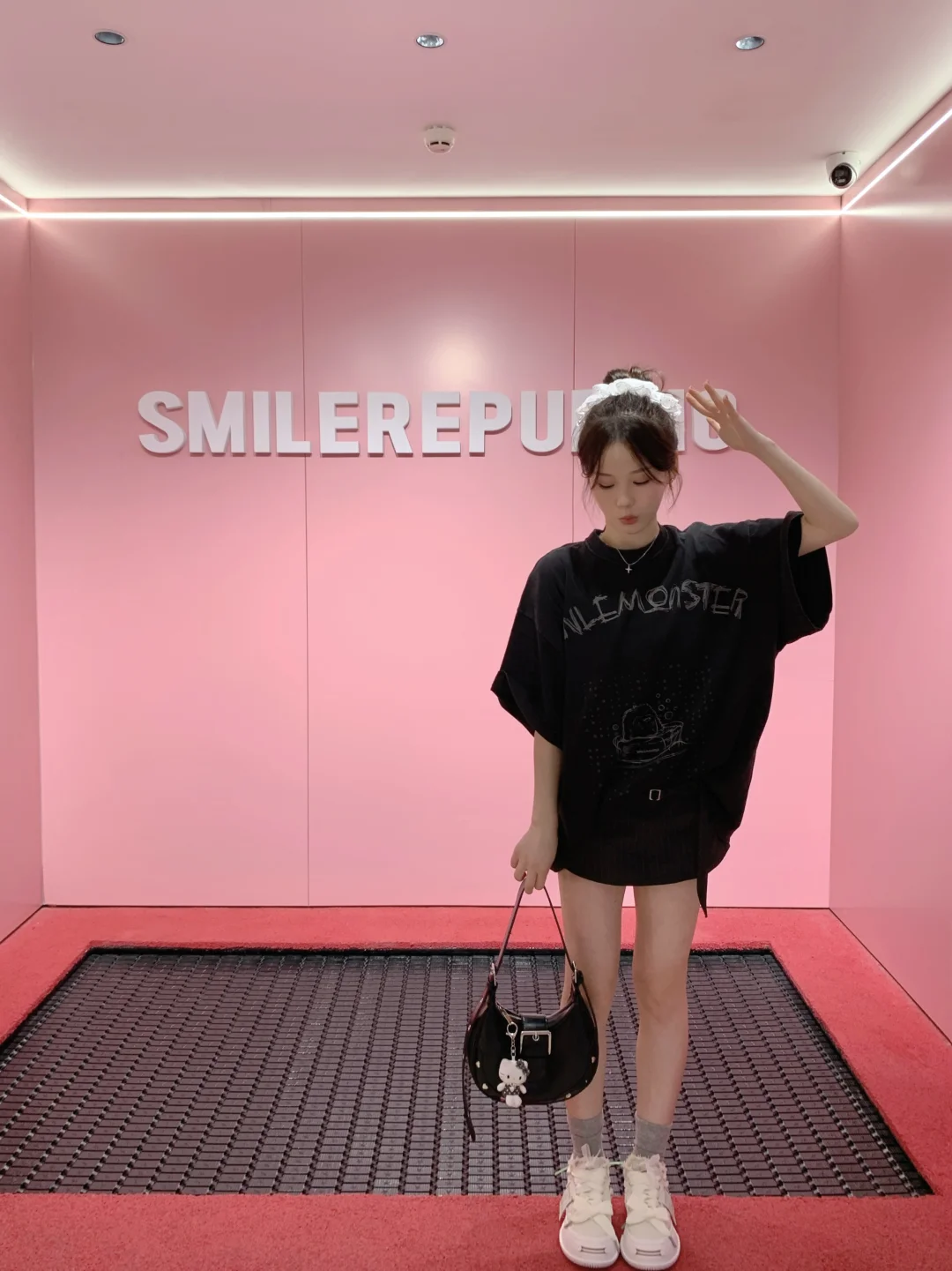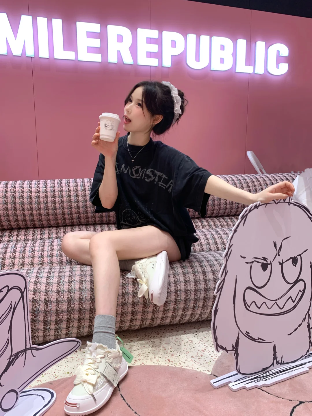 今天这把甜酷到位啦! 黑色也可以搭配的又甜又酷滴 哈哈感觉闯入芭比粉小怪兽异世界了 在smilemonster不仅看到陈赫还和可爱妹妹合照啦~