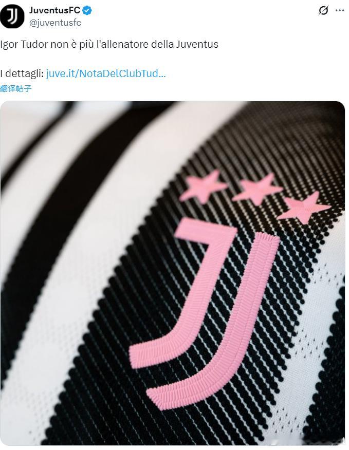 尤文官方宣布主帅图多尔下课,上任后共执教24场比赛。本赛季8轮联赛过后仅排名第八位,近三轮意甲三连败。