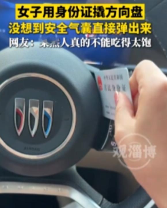 “吃饱撑的!”10月20日,浙江,一女子在车里太无聊,好奇地用身份证撬方向盘,没想到下一秒安全气囊直接弹出来,把女子“打”的鼻青脸肿,网友:原版原漆的“事故车”! 当时29岁的王琳(化名),那天在车里等闺蜜下班,原本是计划去喝奶茶,她提前到了后,可能感觉有点无聊,正好手机也没电了,车外也没什么好看的景致,实在无聊,便开始胡乱摆弄起车里的各种设施。 最先吸引她注意的,便是方向盘上那个带着银色标志的气囊盖,这个小小的标志似乎隐藏了某种神秘的力量,王琳心生好奇,不禁想:“这个气囊是怎么弹出来的呢?” 虽然平时胆子大、性格也稍微“作精”一些,王琳一直对各种未知事物充满了好奇。 虽然她的脑海里常常会冒出奇怪的想法,但这次也不例外,于是,她从副驾驶座的包里拿出了身份证,打算看看能不能撬开气囊盖。 起初王琳也没抱太大希望,她轻轻地把身份证插进方向盘缝隙里,一撬没有反应,再用点力气试了一下,突然方向盘内部传来了一声“咔”的轻响,王琳心中一喜,以为自己真的能看看气囊的构造。 但这时,她还来不及反应,方向盘中间忽然发出一声巨响,“砰!!”一股强烈的冲击力扑面而来,安全气囊瞬间从方向盘中爆开,像一只硕大的拳头狠狠砸在她的脸上。 王琳被猛地推向座椅靠背,脑袋“嗡”地一响,瞬间失去了所有的知觉,鼻子剧烈的疼痛感让她几乎立刻涌出了眼泪。 她双手捂住脸,看着镜中的自己,鼻梁上一个大大的青肿,嘴角的皮肤破了,面部一片狼狈,整个人看上去非常惨。 几分钟后,王琳的闺蜜小李打来电话,听到她带着哽咽的声音,误以为她出了车祸,赶忙赶到现场。 然而当小李看到完好无损的车子,四个轮子稳稳地停在地上,唯独方向盘中间炸得稀烂时,顿时愣住了。 “你干嘛了?被撞了还是雷劈了?”小李一脸懵逼。 王琳抬起手捂着脸,带着些许痛苦的语气回答:“我就想看看气囊长啥样……” 小李瞬间笑了起来,忍不住捧腹大笑:“你这是吃饱撑的吧?这车现在可是原装‘事故车’了!” 王琳的这段经历迅速在网络上传开,视频也被附近监控拍下,很快成为了网友们热议的话题。 大家纷纷调侃她是“吃饱撑的”,甚至有些网友直呼,这简直就是原版的“事故车”——车外完全没事,车内的安全气囊却被“激活”,成了唯一的受害者。 王琳事后也表示,虽然当时非常痛,但她的好奇心和恶作剧的性格让她心甘情愿承担了这个“代价”。 虽然她现在脸上的伤还未完全恢复,但这一切也成了她的一个“笑话”,每次和朋友说起这件事,大家都笑得不行。 这件事不仅让王琳自己“血的教训”,也让我们对安全气囊这一车内安全设施有了更深的理解。 原本只是为了保护车主和乘客在事故发生时能够得到及时保护的安全气囊,如今却因为一时的好奇心,成为了“意外”的制造者。 有网友感慨,安全气囊虽然是车内保护措施,但也正是由于它强烈的弹出力度,才让这场“恶作剧”变成了一个“痛”教训,幸好王琳只是受了些皮肉伤,若是在高速公路上,后果就不堪设想了。 对于这件事情,大家有什么看法?可以在评论区聊聊