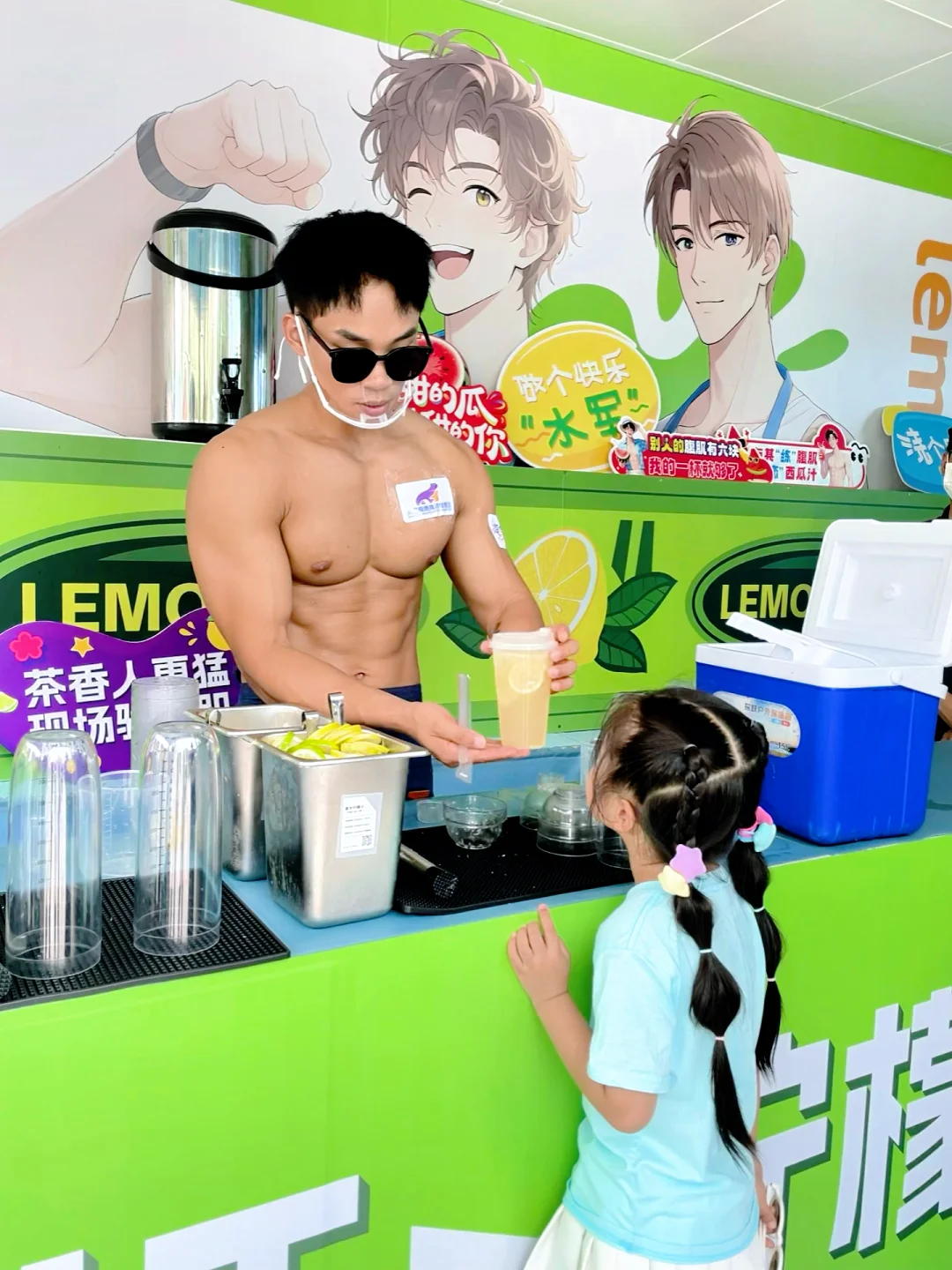 周六、日14:00-17:00机械王国-补给站,玩累了,安排一杯肌肉暴打柠檬茶!肌肉帅哥现场捶打,酸酸甜甜的一口下去透心凉超解渴,孩子喜欢喝!