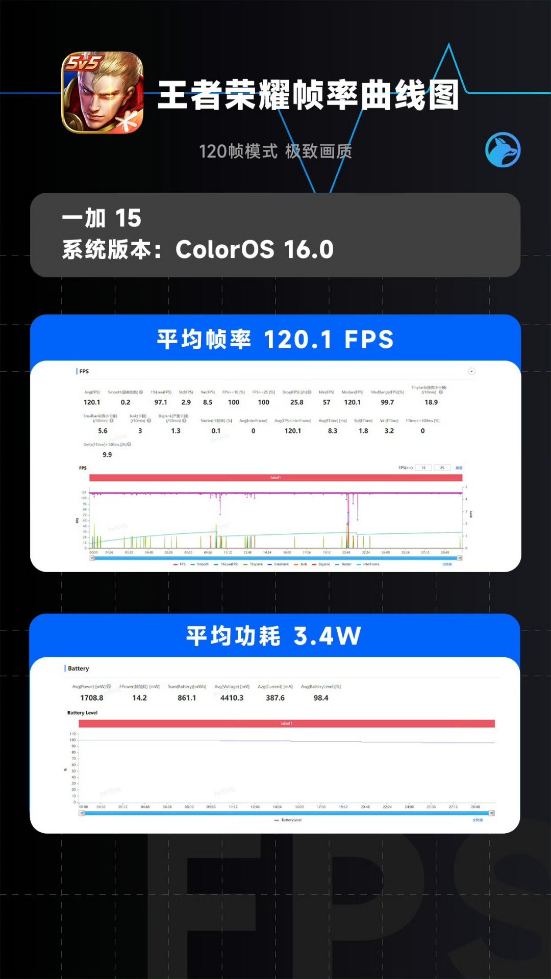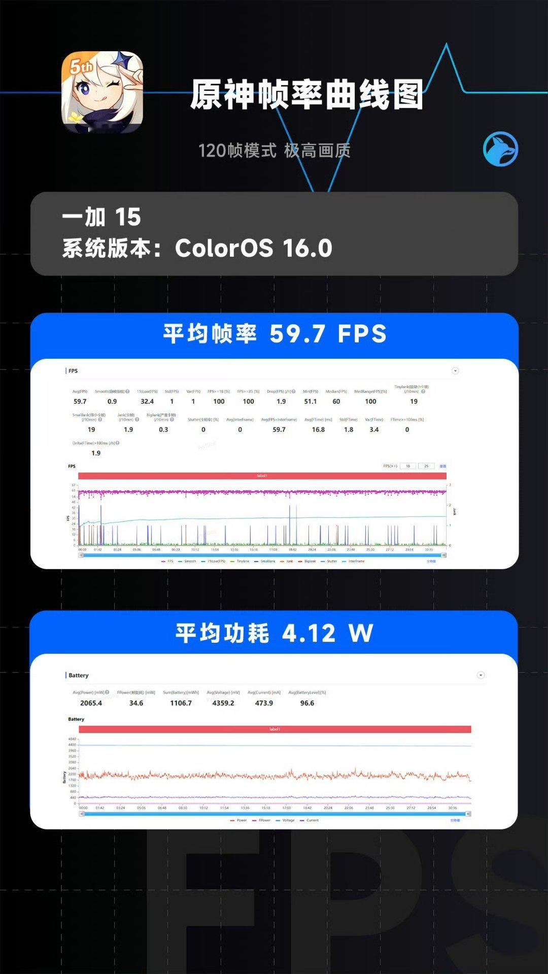 原神极高渲染精度60帧,30分钟须弥城跑图,平均帧率是59.7帧,功耗4.12W;王者荣耀,极致画质120帧,30分钟平均帧率是120.1帧,功耗3.4W