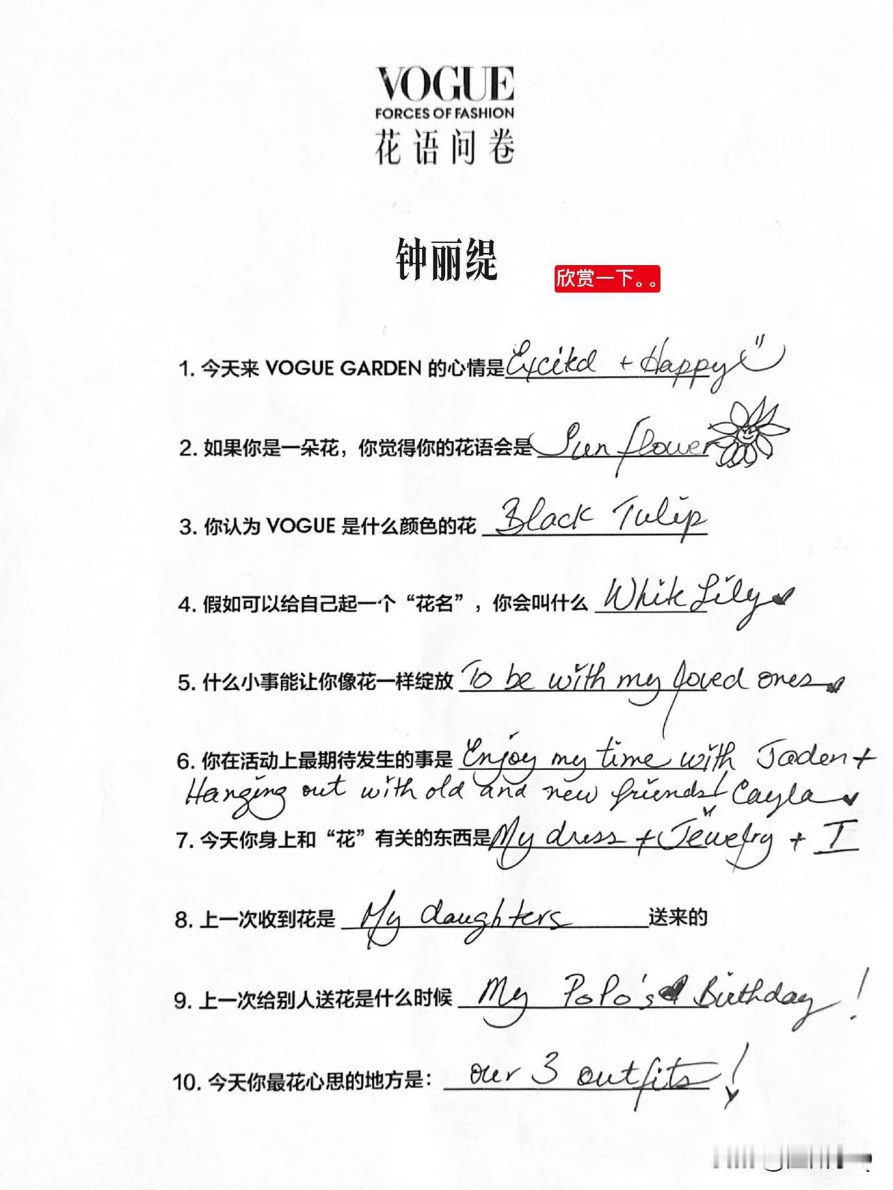 钟丽缇出生于加拿大,英语也是她的母语之一。她的英文字写得还挺潇洒自如,跃动感很强。