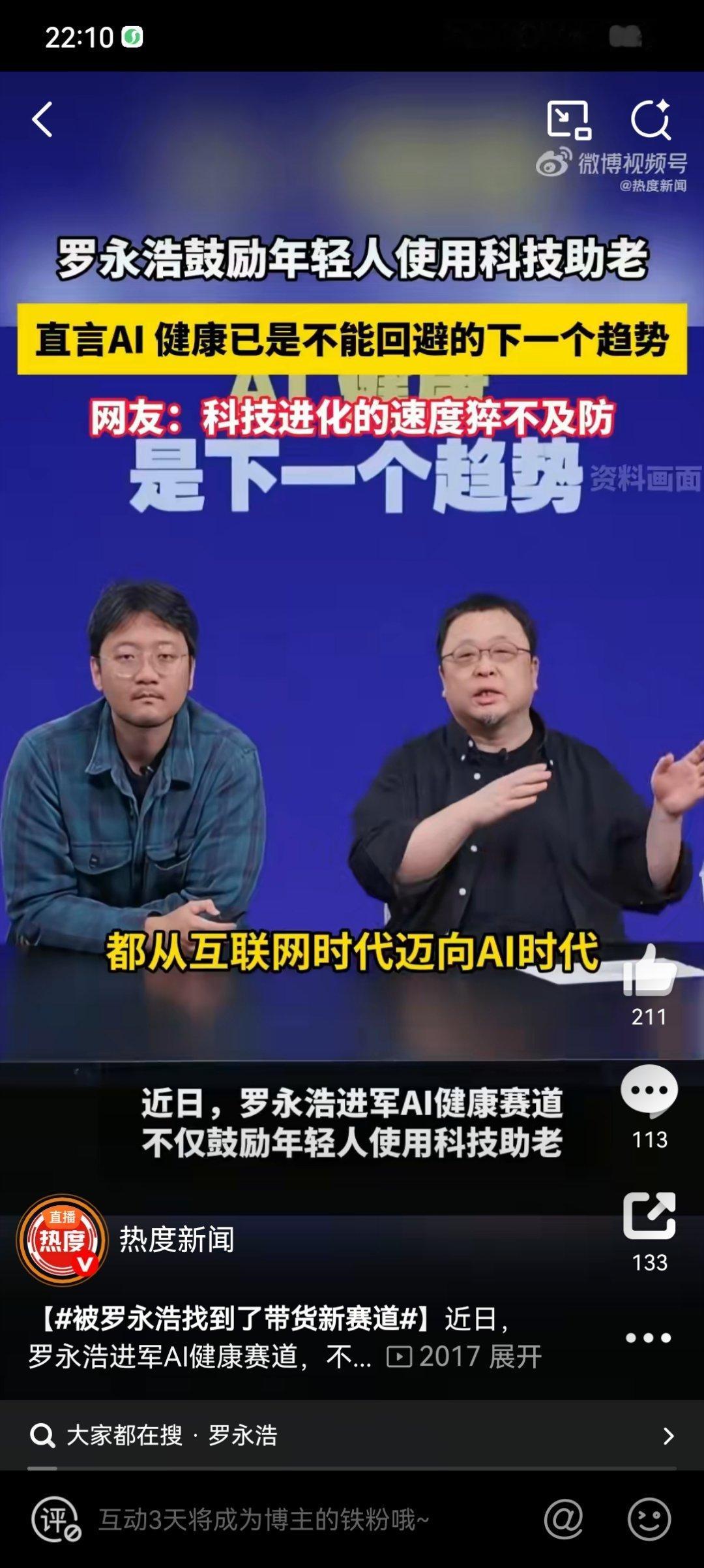 被罗永浩找到了带货新赛道AI健康管理正成为不可忽视的新趋势。罗永浩此次切入AI+养老赛道颇具前瞻性,智能用药提醒、健康数据监测等功能直击老年人照护痛点。随着人口老龄化加剧与技术成熟,AI不仅为健康管理提供新工具,更将重塑代际关怀模式,科技向善的价值值得期待。