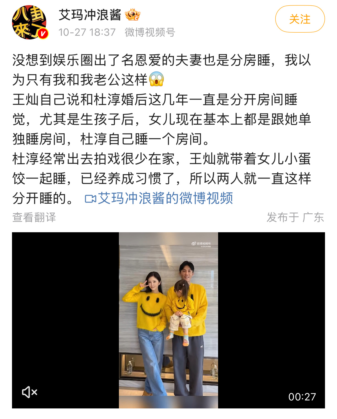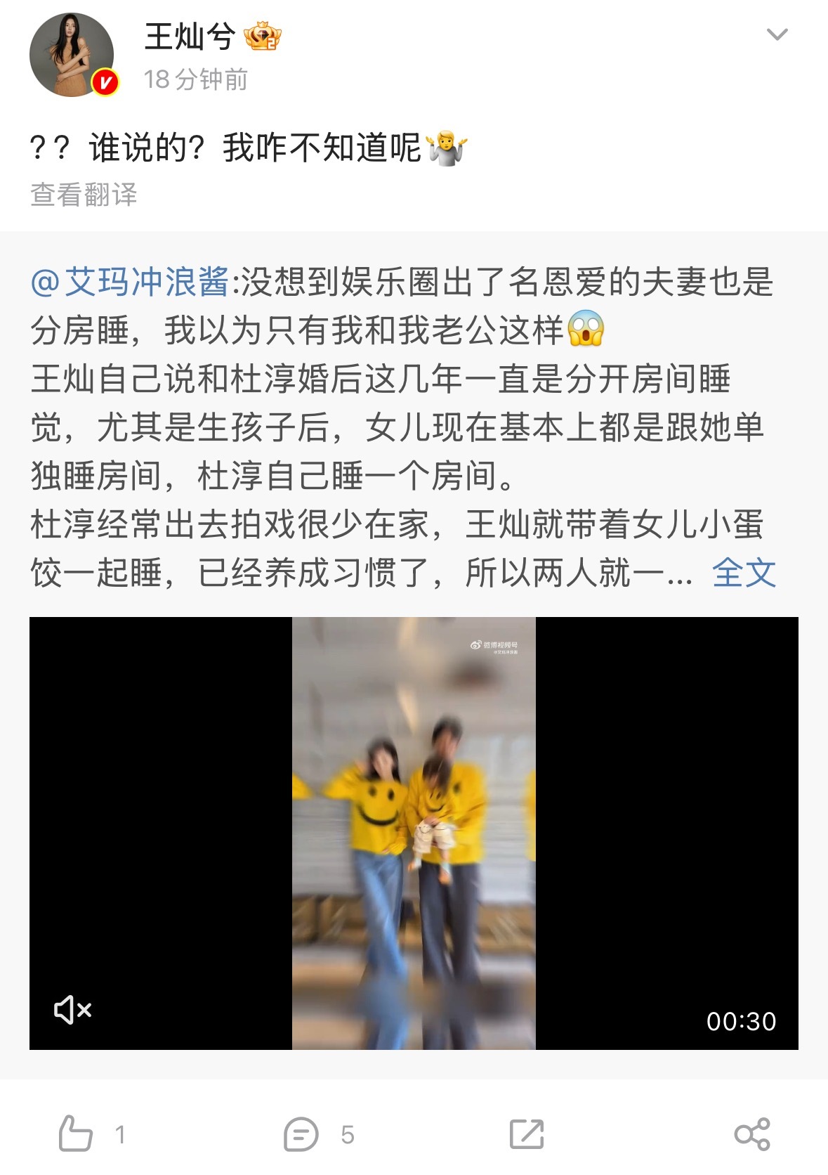 王灿兮回应与杜淳婚后一直分房睡的爆料