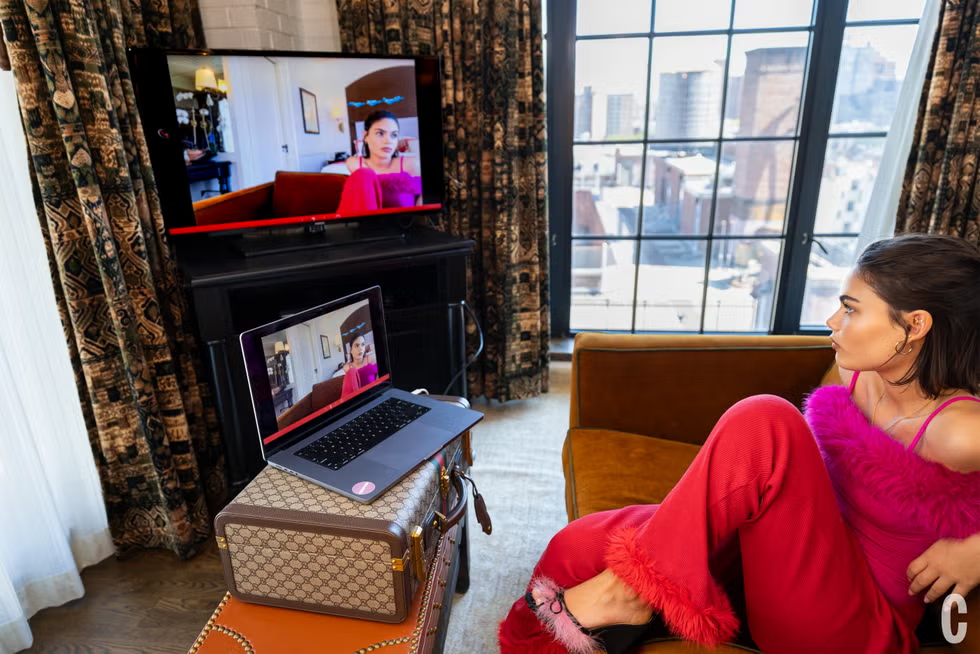 刘亦菲把死亡玫粉穿出了定制款的感觉,这种颜色普通人穿上分分钟黑三度,她居然能穿出