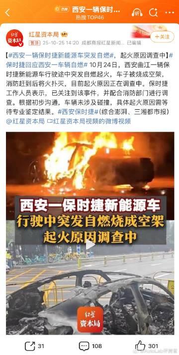最近还真是新能源的"多事之秋"啊又烧了一台保时捷新能源【来自懂车帝车友圈】