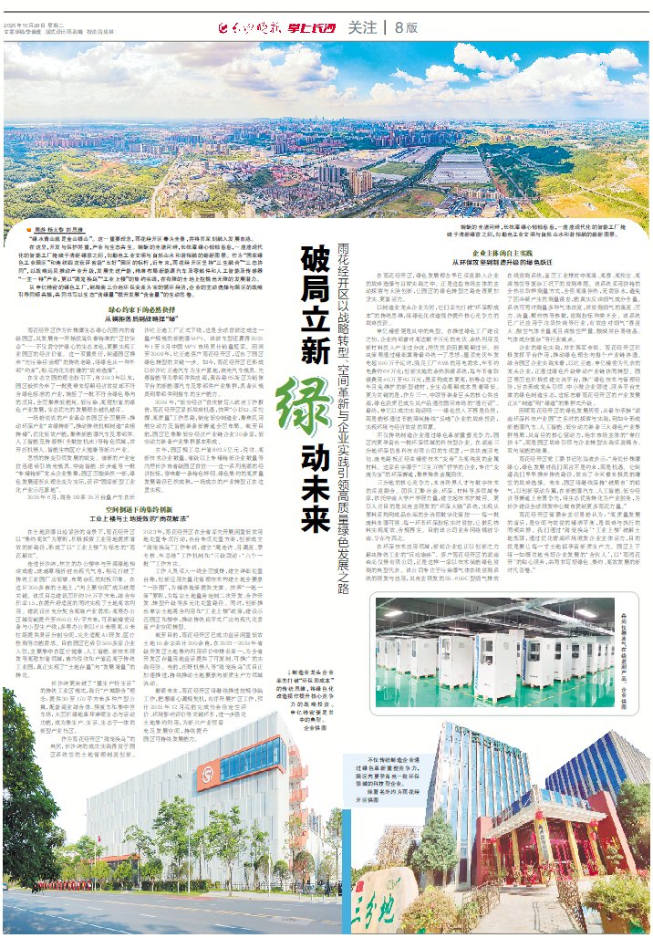 在雨花经开区,绿色发展理念早已深度融入企业的战略选择与日常实践之中。正是这些市场主体的主动探索与大胆创新,让园区的绿色转型之路走得更加坚实、更富活力。
