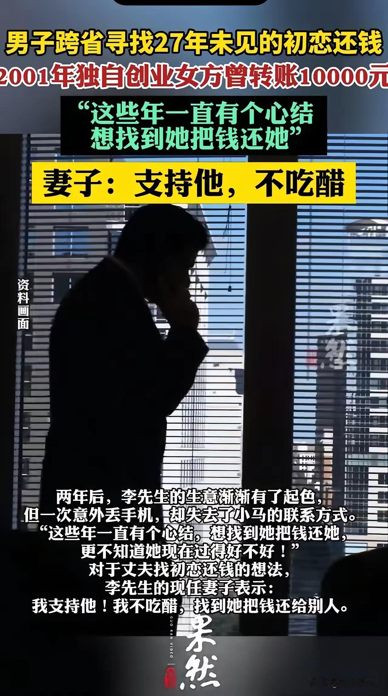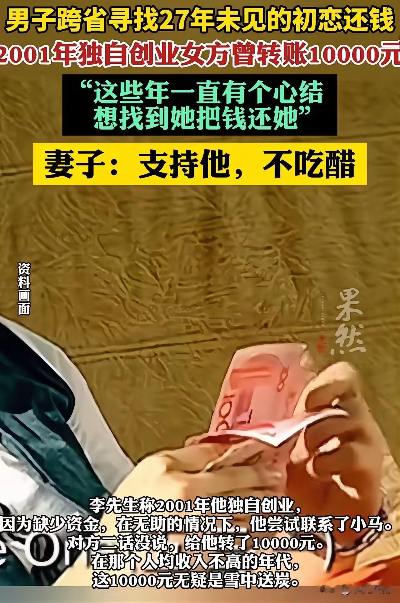 男子跨省寻27年未见初恋还钱:一场跨越时空的情感羁绊 在这个快节奏的时代,人与人的距离看似越来越近,然而有些情感却能跨越时间与空间的鸿沟,深深扎根于心底。近日,一则男子跨省寻找27年前初恋还钱的故事引发广泛关注,让人们真切感受到那份纯粹而真挚的情感力量。 故事主人公是一位普通男子,他回忆起2001年创业时的艰难岁月。那年,他独自踏上创业之路,邂逅了一位善良的女孩。在他最为艰难的时刻,女孩给他转账10000元,给予他极大的帮助。随着时光流转,男子创业成功,但他始终没有忘却那份善意,也没忘记那个曾出现在他生命中的女孩。 27年过去,男子心中一直有个心结——他一心想找到女孩,还清当年所借的钱。为此,他毅然决定跨省寻找。这一决定,不只是为了还钱,更像是一场穿越时空的情感探寻。男子坦言:“其实我心里还有她,就想见见她,感谢她当年的帮助,也想让自己心里那份未了的情感有个了断。” 他的妻子得知此事后,给予了全力支持。她表示:“我理解他的心情,也相信他只是想还清那份恩情,我不吃醋。”这份理解与支持,让男子寻找的决心更加坚定。 网友们也纷纷发表看法,有人打趣道:“27年前借的一万块,现在估计得还十万咯。”也有人感慨:“这其实是心里的一份情感羁绊,就是想见见她,表达感激之情。”更多人被这份纯粹的情感所打动,认为无论结果如何,男子的行为都值得尊重。 这个故事让我们明白,人与人之间的情感,常常超越金钱和时间的限制。那份曾经的善意与帮助,成了男子心中难以割舍的牵挂。或许,他这次跨省寻找,不只是为了还钱,更是对过去的感恩、对未来的期许。 无论最终是否找到女孩,这份执着与真情都值得我们敬重。在这个纷繁复杂的社会里,保持一份纯粹的善意与感恩之心,或许才是我们最宝贵的财富。