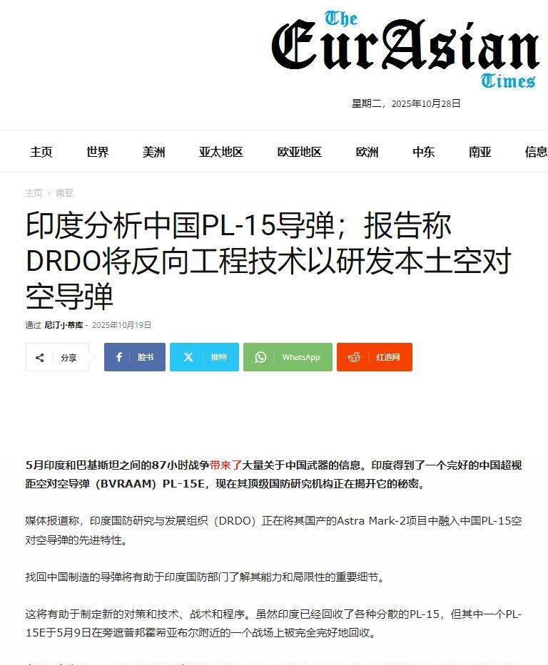 印媒自曝缴获中国PL-15E残骸!美日法争相合作,印度真能山寨出“山寨版”导弹?