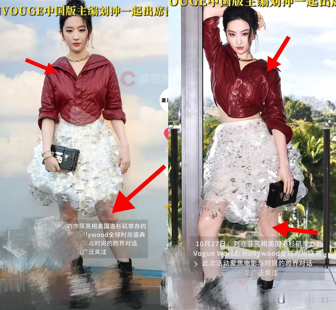 大家千万别被刘亦菲骗了, 生图和修图完全不一样, 她是真的胖了呀, 一身红色造型梦回“花木兰”,粉丝生图随便拍都非常惊艳,这个毋庸置疑,但是生图下的刘亦菲是真胖了,而且这个衣服怎么感觉好丑, 尤其和修图一对比,更是明显,该说不说,人家依旧闪闪发光,作为全场的焦点,硬是靠这张脸撑着,爱了爱了,