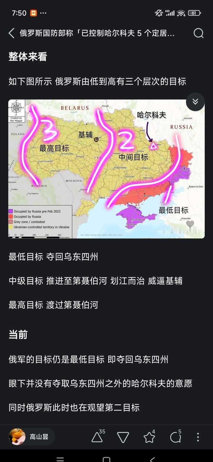 红军城后面不还有乌东三要塞吗,红军城的重要性被高估了吗?如果俄军攻下红军城,战争达到哪里才会停呢? ------------------------------------ 除非美国提供大笔军援甚至亲自下场 否则俄军还会继续推进 至少局部会推进到第聂伯河一线 以制造出足够的安全纵深 因为乌东四州 尤其是卢顿二州是发达的工业地区 打出缓冲区 二州就可以投入生产 没有缓冲区 二州只会成为沉重的军事负担 下图是去年5月做的分析