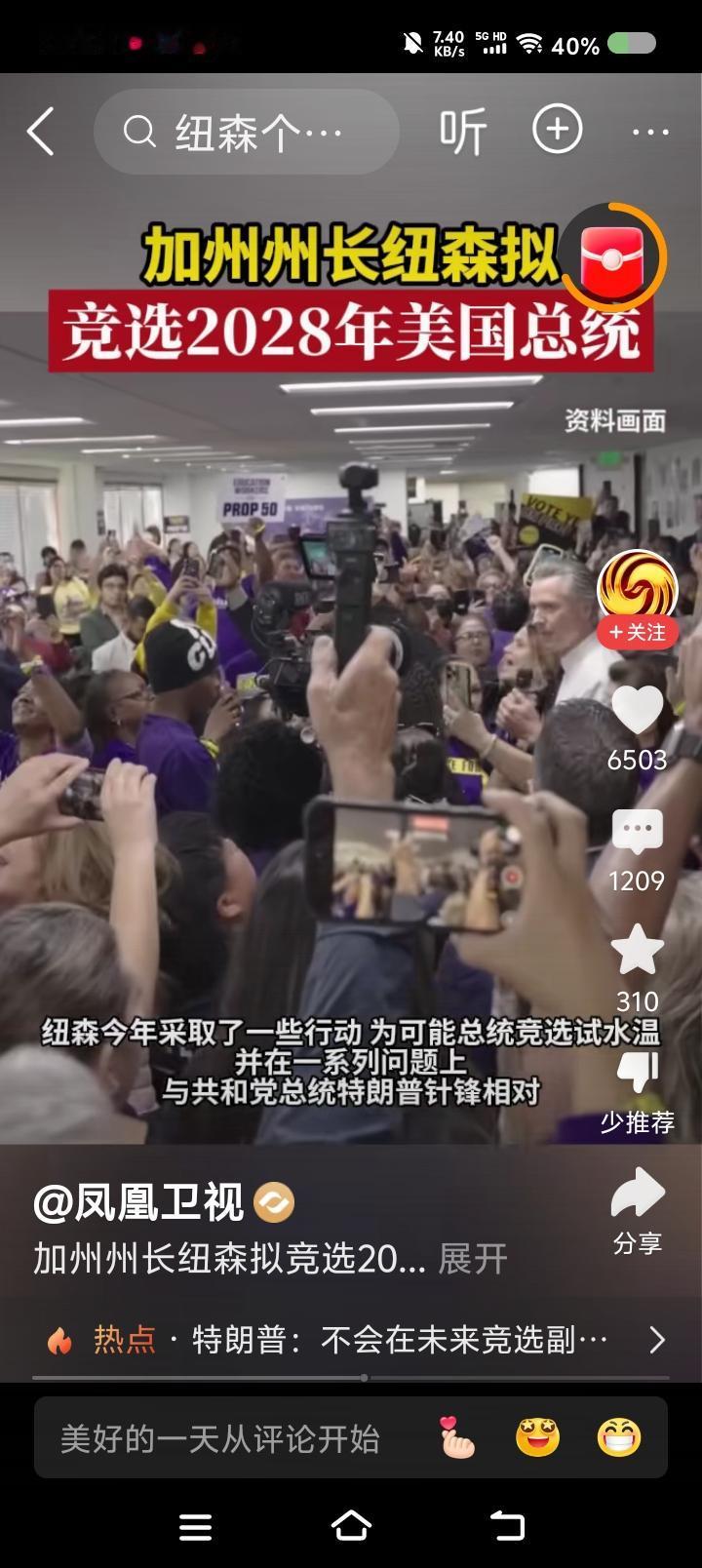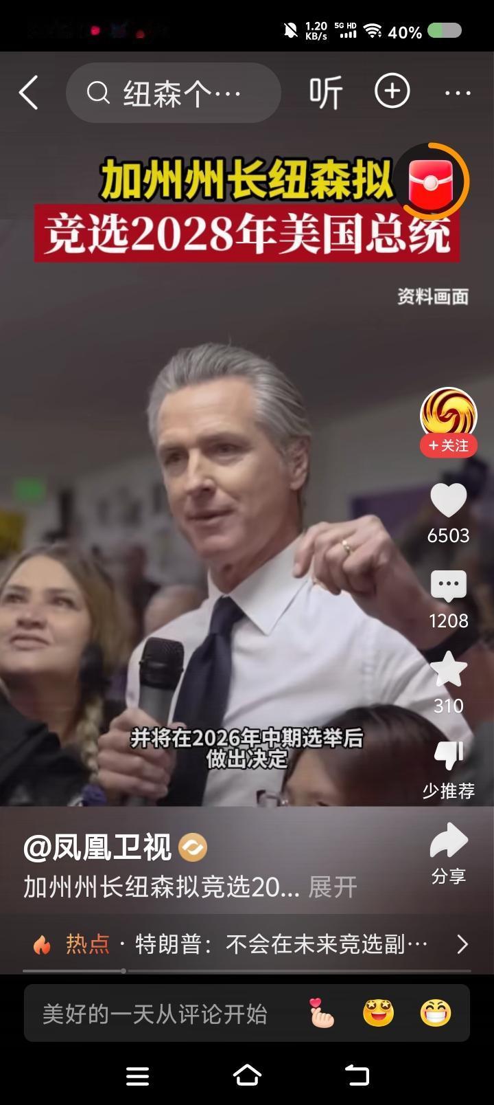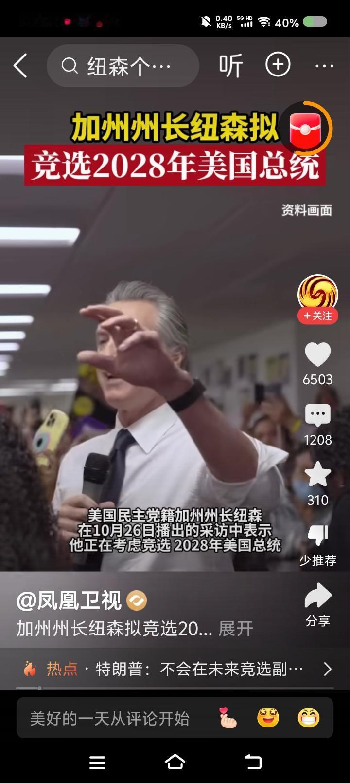 纽森,你咋这样?—— 据报道,加州州长纽森近日表示,有意参加2028年美国总统竞