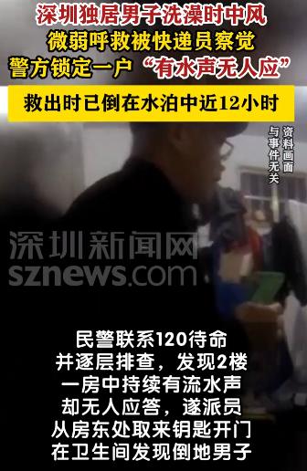 近日,深圳龙华松元派出所接到了一名快递员的报警,称其在分拣时听到有微弱的呼救声,等民警到场后呼救声却再未响起。   10月18日清晨7点,深圳龙华松元派出所附近的快递分拣点里,传送带运转的沙沙声盖过了周遭的动静。   一名快递员正低头整理包裹,忽然有丝极轻的声响钻进耳朵,像人在虚弱时的呼救,又像风吹过窗户的杂音。   他停下手里的活,侧耳细听,那声音断断续续飘下来,混在纸箱碰撞声里若有若无。   不会是听错了吧?他皱着眉在分拣点来回走了两步。   直到又一声微弱的“救命”传来,他立刻掏出手机拨了110,语气里藏不住的焦急。   而这通电话,成了一场生死救援的起点。   当天的7点30分,民警费小刚带着队员赶到现场,可奇怪的是,那声呼救却像凭空消失了。   整栋楼静悄悄的,几十扇紧闭的房门后,谁也说不清是否藏着紧急情况。   难道是恶作剧?有队员小声嘀咕,但费小刚摇了摇头,绝不能放过任何一丝可能。   他当即安排两组人行动,一组联系120急救车到场待命,一组从一楼开始逐户排查。   脚步声在空荡的楼道里回响,每一次叩门都伴着屏息的等待。   排查到二楼时,一扇紧锁的房门让民警停了下来,敲门无人应答,屋里却传来持续的流水声,哗啦哗啦的声响在寂静中格外刺耳。   情况紧急,民警立刻联系房东,得知对方没法立刻赶过来,所里马上调度摩巡队员驱车去取钥匙。   半小时后,钥匙送到了现场,民警和医护人员一同推开门,一股潮湿的寒气扑面而来。   众人直奔卫生间,只见一名男子蜷缩在冰冷的地面上,花洒还在哗哗淌水,冷水把他的衣服浸得透湿,他虚弱得只能发出微弱的呻吟。   经询问家属才知道,这名独居男子前一晚洗澡时突发中风倒地,已经在地上躺了近12个小时。   医护人员迅速做了紧急处理,民警合力将男子小心抬下楼,送上早已等候的救护车。   与此同时,派出所启动合成作战机制,很快联系上了男子的家属。   当家属赶到医院,握着民警的手反复道谢时,声音里满是劫后余生的庆幸。   深圳的这场救援,它不是单一的英雄行为,而是一条由普通人搭建的责任链。   快递员的耳朵比监控更敏锐,捕捉到了几乎要被淹没的呼救。   民警没有因“声音消失”就放弃,用逐户排查的坚持守住了生命防线,摩巡队员的接力取钥匙,为救援抢回了关键时间。   现代城市里,我们总习惯关上门打造自己的小空间,却可能在意外来临时切断求生的信道。   就像深圳这场跨越12小时的救援,每一个普通人的坚持与善意,终能在危急时刻,为生命撑起一片安全的天空。