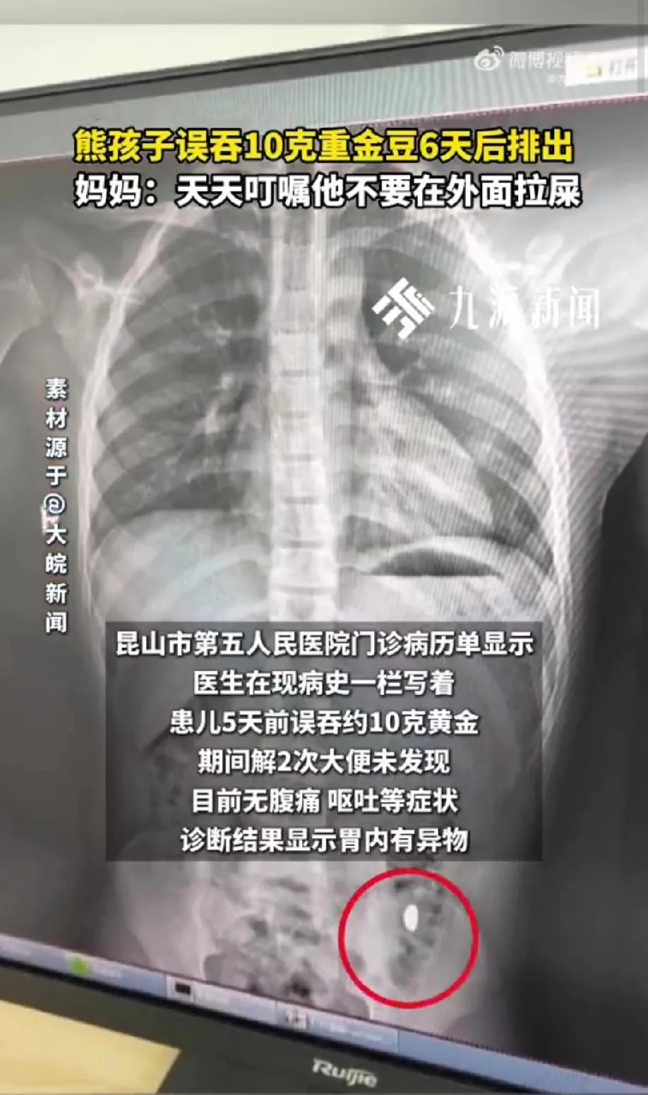真是吞金兽!江苏昆山一名11岁男孩为“锻炼舌头力量”,将母亲网购的10克金豆(价