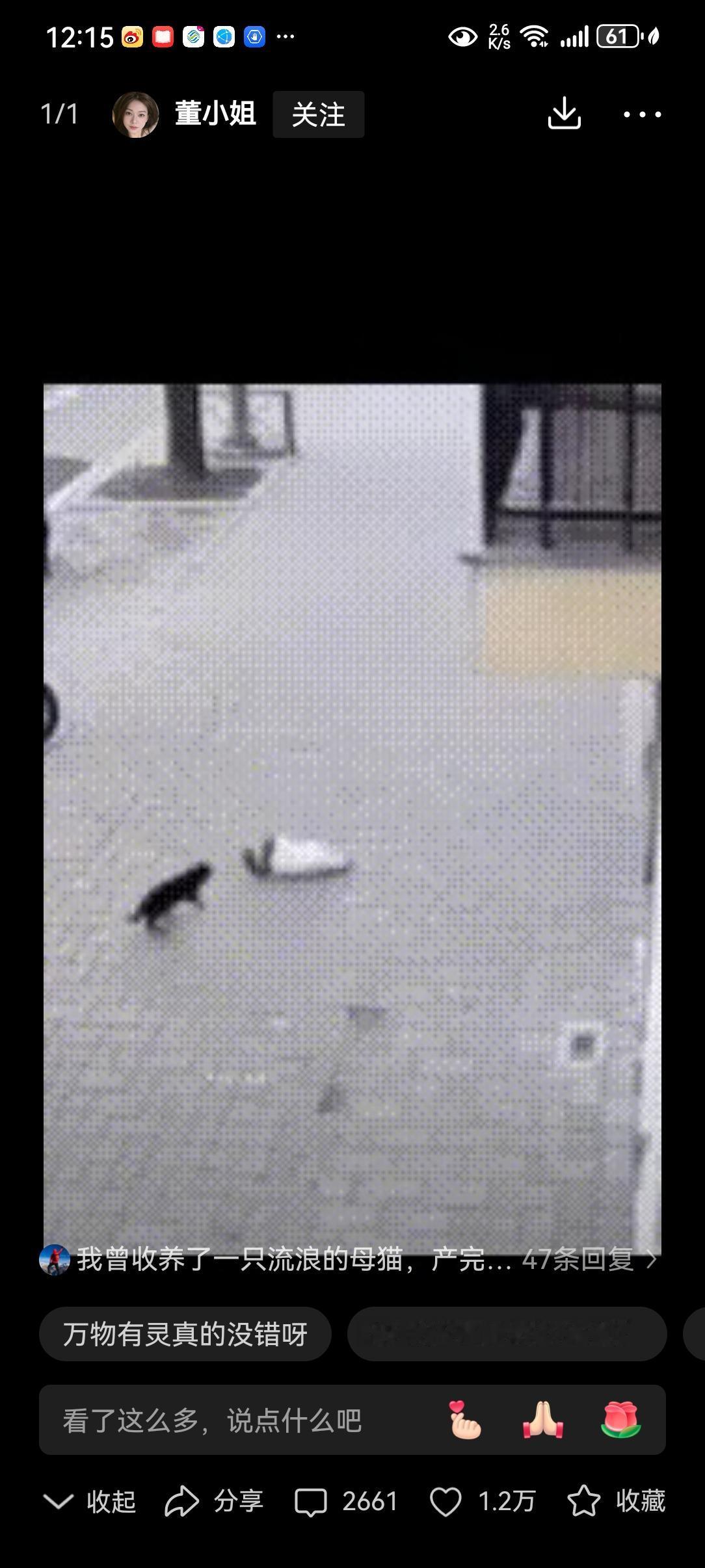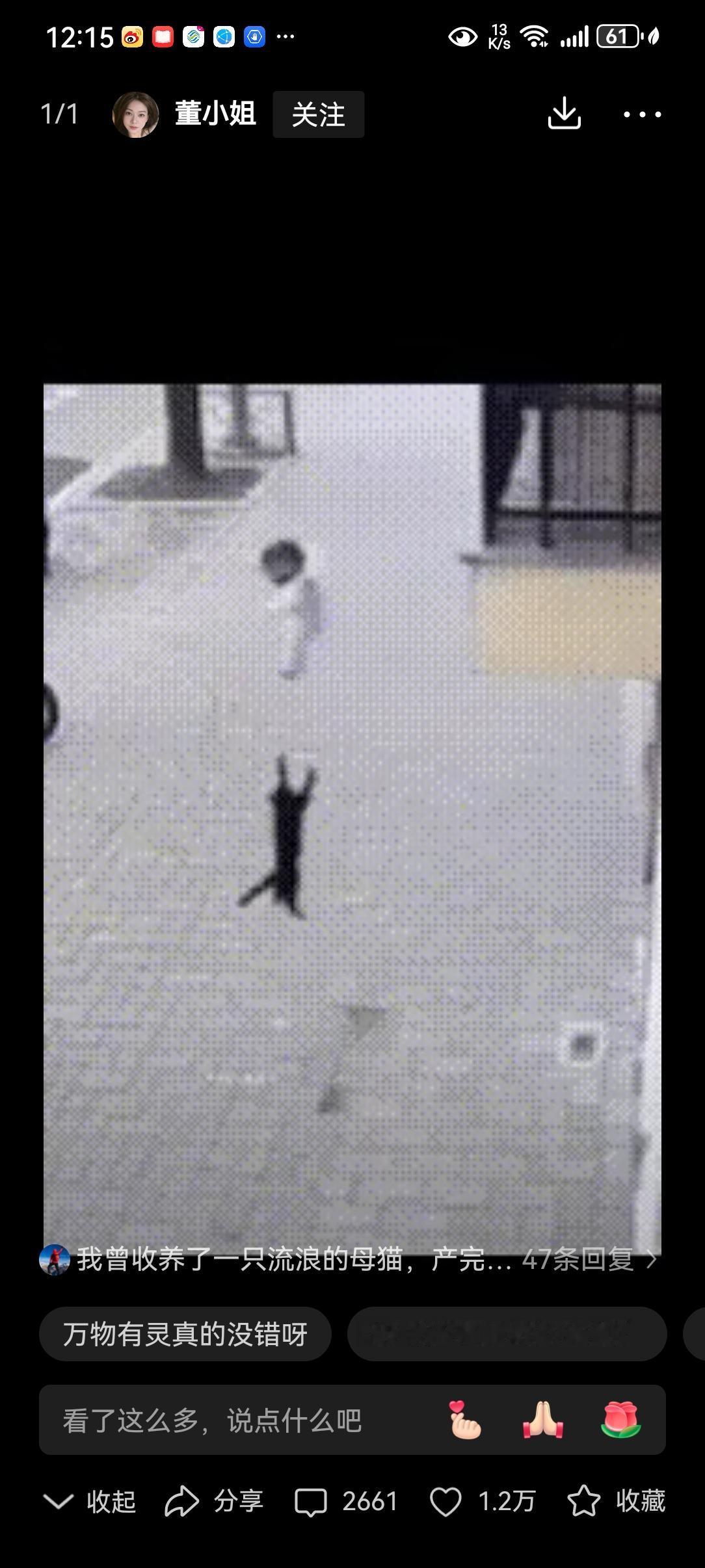 婴儿从高楼坠落,楼下猫咪看到,竟然奇迹般做出了救助动作,虽然它没有能力接住婴儿,但是帮婴儿坠落卸了不少重力,这也使得婴儿只是受了轻伤。 当时猫咪正在眯着眼休息,听到楼上动静抬头的瞬间,孩子已经掉了下来。 它没有躲开,反而猛地扑过去,一下抱住孩子的身体,立刻被孩子砸落到地面。 虽然没能接住,但这下缓冲,硬生生卸去了大部分冲击力。 几个大人跑过来抱起孩子,惊喜得发现孩子好像伤得不重。 救护车很快赶来,医生检查后说,孩子只是腿骨轻微骨裂,皮肉有点擦伤,万幸中的万幸。 那只猫“事了拂衣去,深藏身与名”。 以前总听人说“万物皆有灵”,直到亲眼看见这只猫的反应,才真正懂了这句话的分量。 不是所有善意都要用语言表达,这只勇敢的小生命,值得所有人为它竖大拇指!