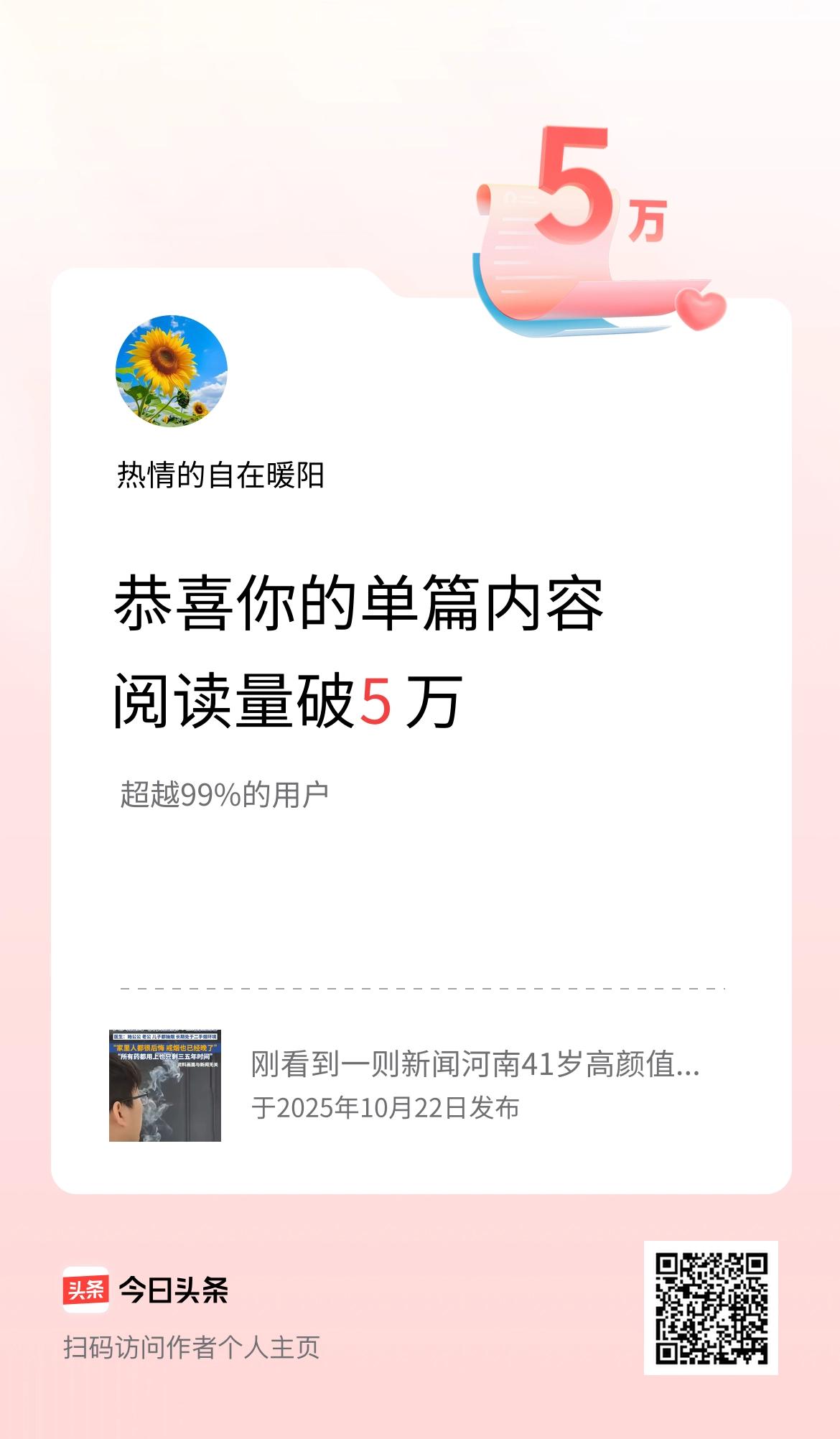 单篇内容获得阅读量破5万啦!