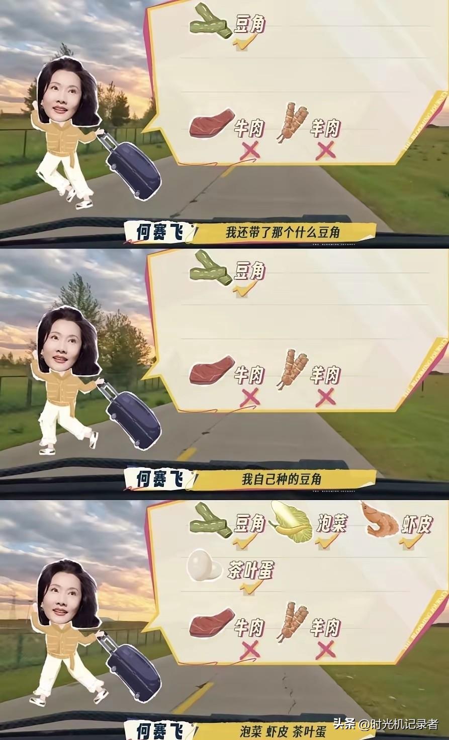 何赛飞真的是太生活了。别人参加综艺节目想着怎么玩好,他到处想着吃的。自己带的豆角,虾皮。就担心当地的饭菜自己吃不习惯。 在饭桌上和赛飞也是很贴心总是为我嘉宾加菜分享美食。
