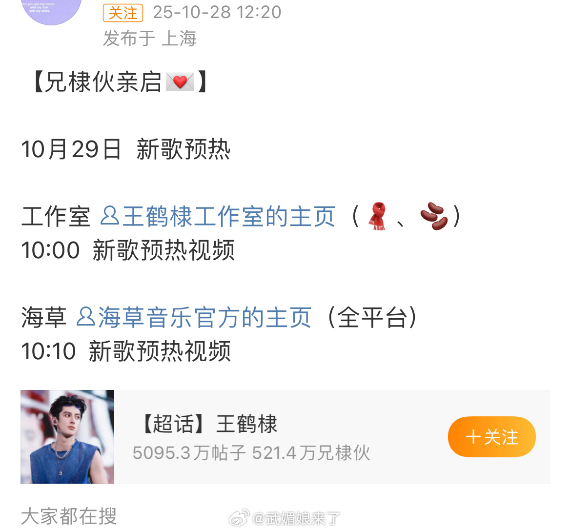王鹤棣新歌预热要来了,粉丝又幸福了,太期待了[送花花][送花花]