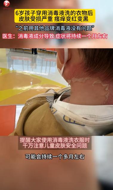 “悲剧还是发生了!”近日,广东深圳,一家长用洗衣机给儿子洗衣服时,特地加了1瓶盖的消毒液杀菌,结果衣服上残留的消毒液,将6岁儿子的皮肤严重腐蚀,一开始只是感觉瘙痒,几天后就开始大面积蜕皮!医生:一个月后可能才会好转。 深圳儿童医院急诊室里,6 岁男孩撕心裂肺地哭着,妈妈王女士攥着孩子的手,眼泪止不住掉 。 孩子身上的衣服刚脱掉,皮肤又红又黑,大面积脱屑,碰一下就喊疼,连医生都皱了眉:“这是化学性皮肤损伤,得规范治疗几周,还可能感染。” 谁能想到,这一切的起因,是王女士几天前 “想给孩子彻底杀菌” 的好心。 那天周末做家务,王女士看着儿子换下的脏衣服,总觉得 “普通洗衣液洗不干净”,想起家里还有瓶消毒液,便拧开盖子倒了满满一瓶进去。 她没看说明书,只觉得 “多放点儿,杀菌更彻底”,洗衣机转完,就把衣服晾去了阳台。 几天后孩子穿上这身衣服,没一会儿就挠着胳膊喊 “痒”。 王女士以为是普通过敏,给涂了点润肤露,可到了晚上,孩子的皮肤开始发红,第二天更是又干又黑,脱屑掉得满床都是,她这才慌了神,赶紧带孩子去医院。 医生拿着孩子的皮肤检测报告解释:“儿童皮脂膜和角质层比成人薄一半,消毒液残留很容易渗进去,刺激皮肤屏障。你这瓶消毒液没按比例稀释,还没充分漂洗,残留的化学物质直接灼伤了孩子皮肤。” 这是传到网上,有网友猜测孩子本身有皮肤病,才被消毒液刺激,实则从医生诊断和事件经过能明确排除 。 孩子此前无皮肤不适记录,症状是穿了消毒衣物后才出现,且与 “消毒液残留引发化学性损伤” 的表现完全一致。 儿童皮脂膜、角质层本就比成人薄一半,即便无基础皮肤病,未稀释、未充分漂洗的消毒液,其残留化学物质也会直接渗透皮肤、破坏屏障,导致发红、脱屑。 医生也强调,这类损伤核心是使用不当,而非孩子本身皮肤问题,更凸显科学用消毒品的重要性。 这话让王女士追悔莫及 ,她从没想过,自己 “爱孩子” 的举动,会把孩子害成这样。 其实这类事故早有警示,家长们得记好 3 个教训: 第一,消毒液不是 “越多越好”。 不管是洗衣还是拖地,都得按说明书稀释,像给娃洗衣服,大多要求 1:100 的比例,一瓶盖能兑一大盆水,直接倒一瓶就是 “毒衣服”。 第二,娃的衣服别用强消毒剂。 儿童皮肤敏感,选温和的婴儿洗护剂就行,实在要消毒,优先选标注 “母婴可用” 的产品,洗完必须多漂洗 2-3 次,确保没残留。 第三,买消毒品别信 “夸张宣传”。 那些标着 “全能杀菌”“强力消毒” 的,大多刺激性强,得看清楚成分表和适用对象,正规渠道买带合格标签的。 医生还提醒,要是娃出现皮肤瘙痒、发红,先脱衣服用温水冲干净,别乱涂药膏,赶紧就医,家里洗衣机用完可以空转一次清水,避免残留。 社区和学校也该多搞点科普,教家长正确用消毒品,别让 “好心” 变 “伤害”。 王女士看着病床上还在哭的孩子,悔得肠子都青了:“早知道看一眼说明书,也不会让孩子遭这罪。” 其实爱孩子从不是 “想当然”,多一分细心、多一点科学,才能真的护好娃 ,毕竟再浓的善意,也得配得上正确的方法。 对此,你还有什么看法呢? 信息来源 :AHTV第一时间