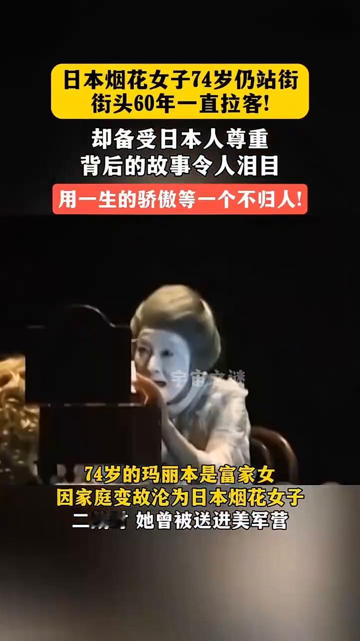 日本烟花女子74岁仍站街,街头60年一直拉客,却备受日本人尊重,背后的故事令人泪目。 此后60年她在街头拉客,优雅打扮,坚守尊严,拒绝施舍。她一直等待曾承诺归来的美国大兵,虽遭误解嘲笑,却赢得尊重。最终她在养老院度过晚年,这段等待的故事成为传奇。