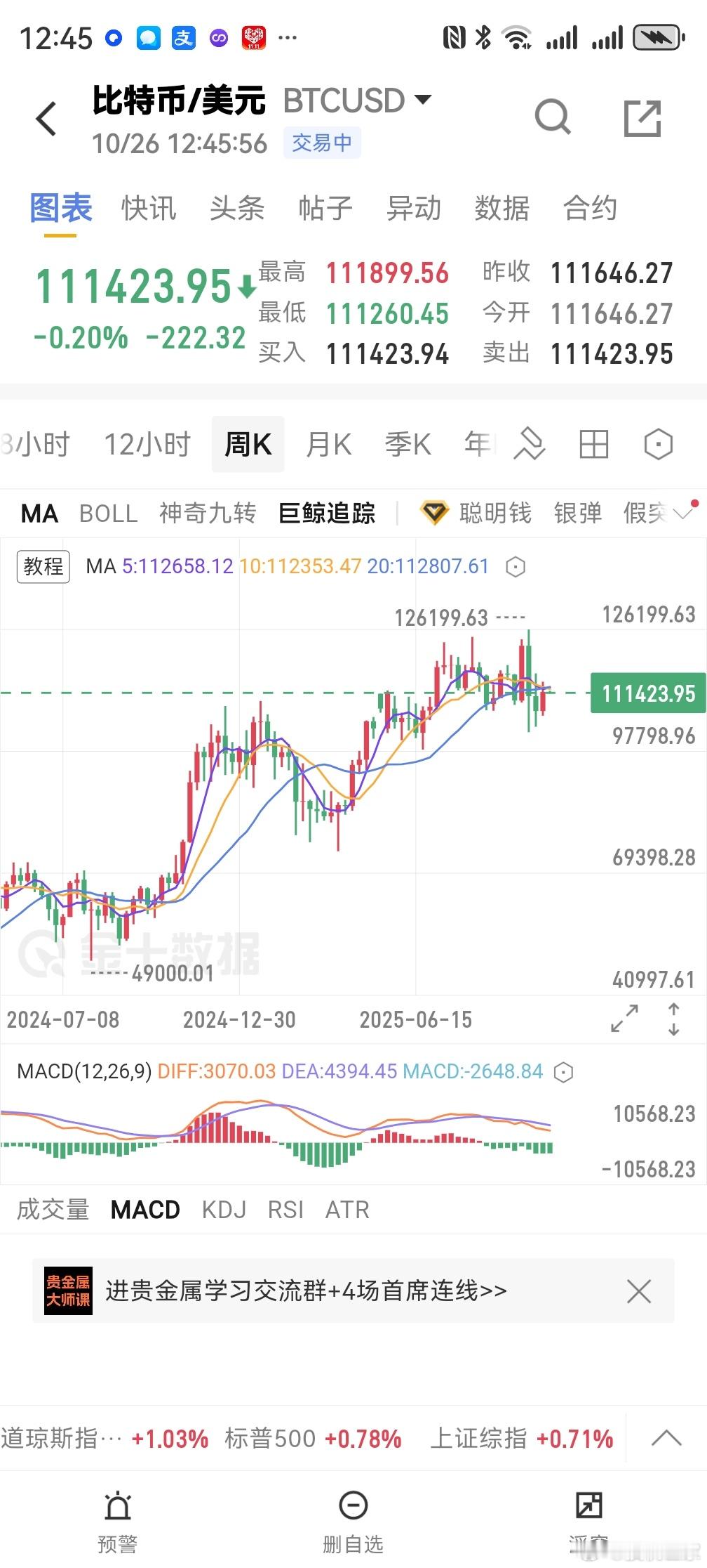 比特币也在低位支撑上磨。