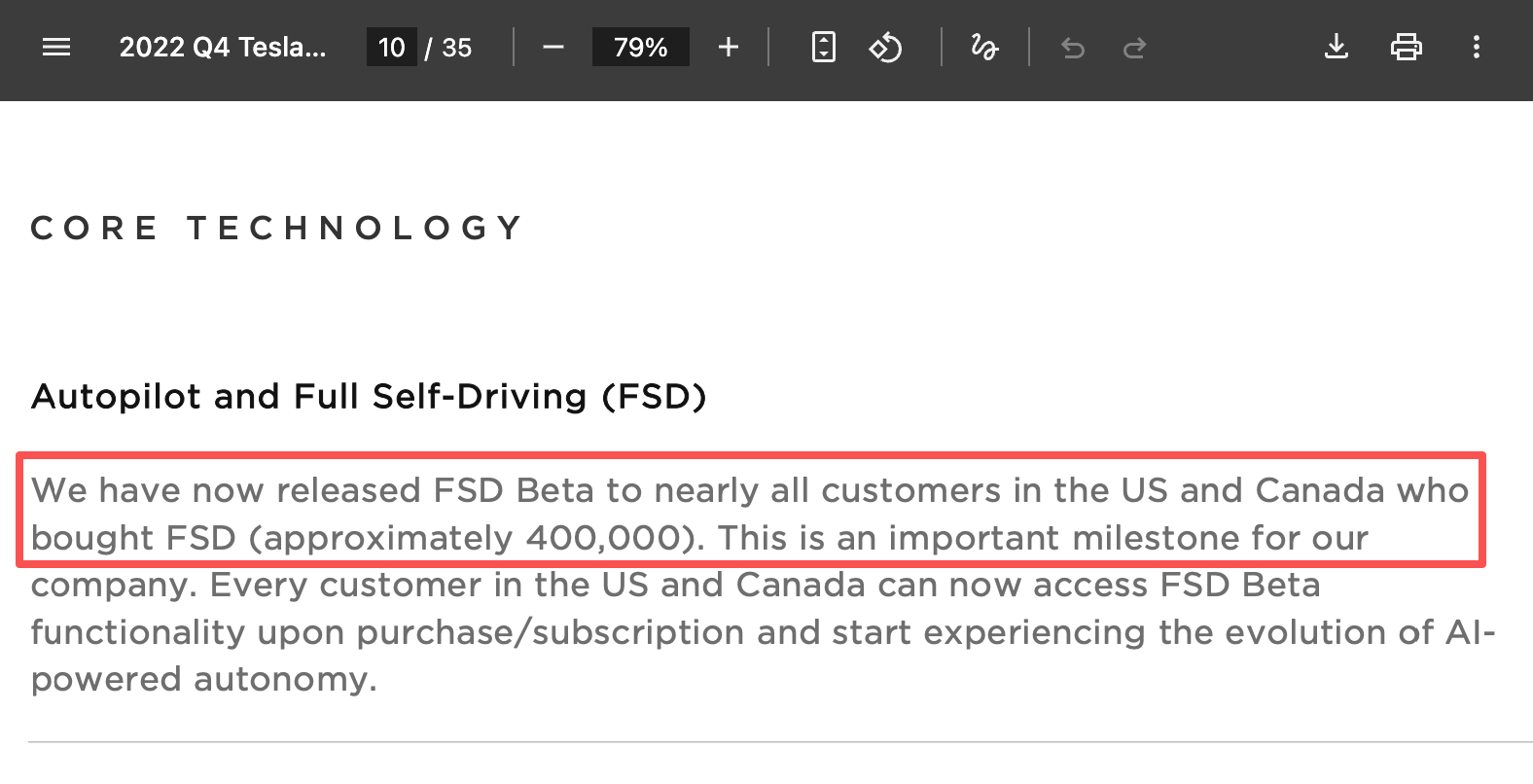 截至目前特斯拉累计销量约为 790 万辆,从 12% 可以计算得出 FSD 的实际选装用户规模约为 95 万辆。