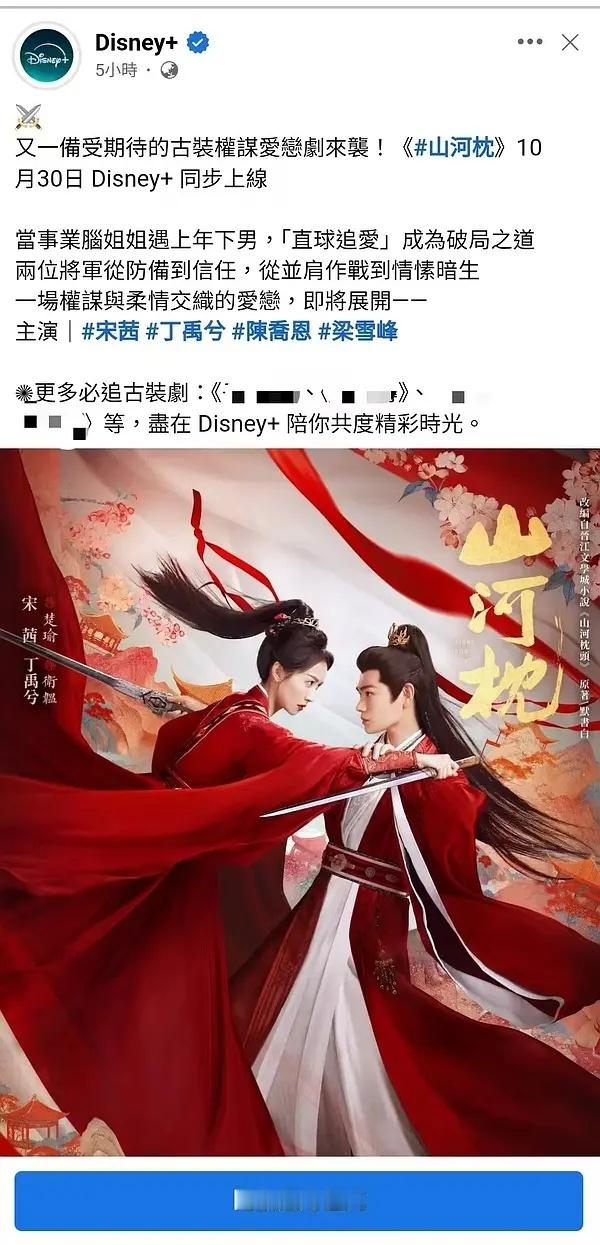 丁禹兮《山河枕》官宣同步 海外流媒体巨头Disney😳➕上星浙江卫视~丁禹兮和迪士尼还真是有缘分,去年刚参与广播配音,今年又有新剧~倒计时两天了,10.30一起来看山河枕[点赞][点赞][点赞]丁禹兮山河枕卫韫
