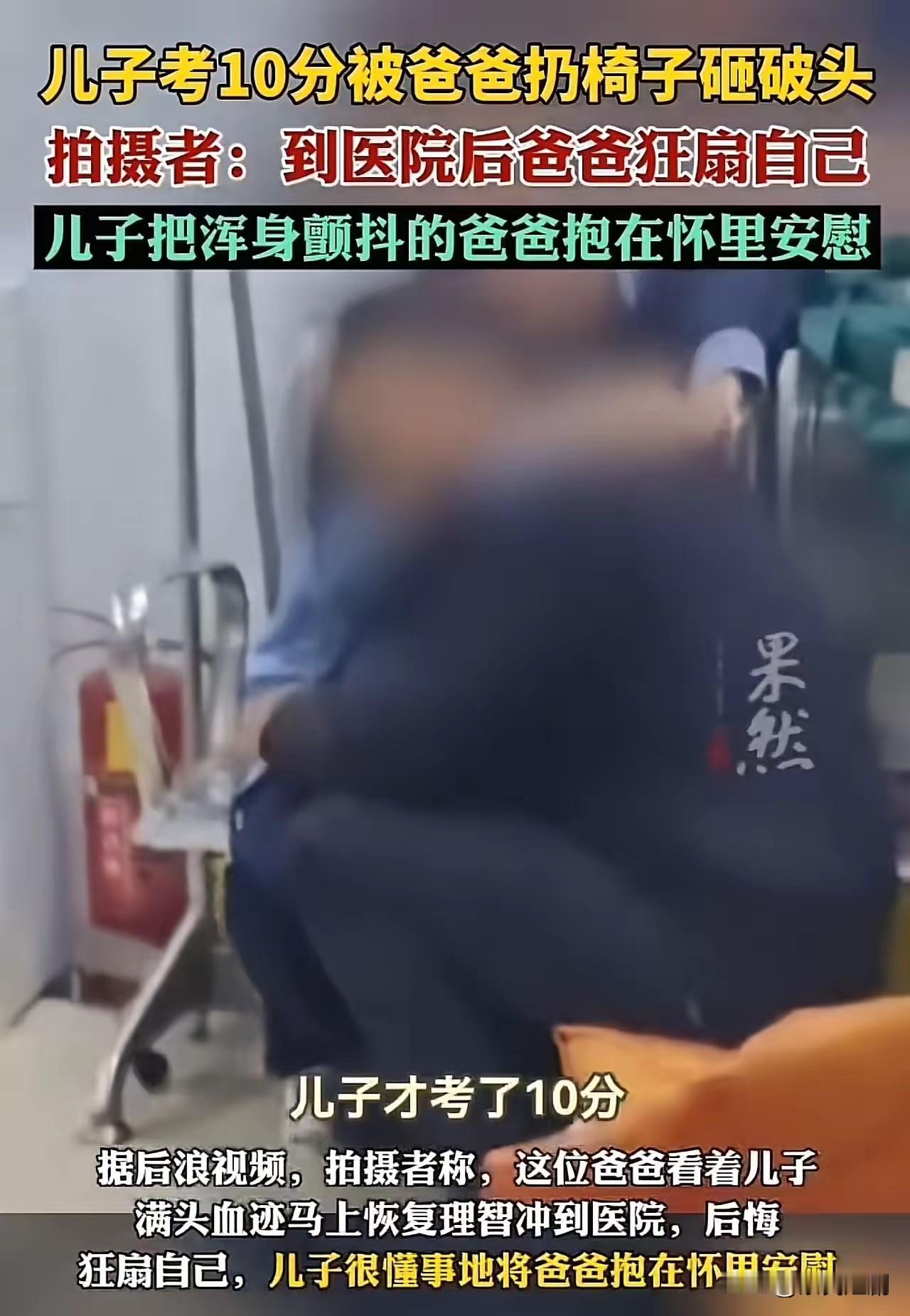 在这个节奏飞快、压力如影随形的社会里,家庭所给予的温暖与理解愈发显得弥足珍贵。然而,现实往往充斥着冲突与误解。故事里的这对父子,或许正是众多家庭的真实写照。 儿子考了10分,在父亲看来,这或许是个令人失望的分数,但于儿子而言,这是他努力的成果。父亲一时情绪失控,抄起椅子愤怒地砸向儿子,致使儿子头破血流。这一幕着实令人痛心疾首,也引人深思:家庭中的爱与责任,是否该以理解和包容取代暴力与愤怒?父亲事后很快恢复理智,赶忙带着儿子前往医院,还在走廊里自责不已,疯狂地扇自己耳光,试图用自责来弥补那一瞬间的失控。 更令人动容的是儿子的反应——他既没有埋怨父亲,也没有逃避责任。相反,他以宽容的心态接纳了父亲的冲动,甚至在一定程度上,展现出对家庭深深的眷恋。网友们看到这一幕,纷纷感慨:“我儿子都不嫌我穷,我凭啥嫌他成绩低?”这句话说出了众多家庭的心声:在物质条件或成绩面前,我们是否忽略了最为重要的亲情与理解? 家庭,不应沦为成绩的竞技场,而应是情感的避风港。孩子的成长,不只是学业上的进步,更是心灵的蜕变。父母的职责,便是用爱与耐心陪伴孩子度过每一个低谷。或许,这个故事在提醒我们:面对孩子的不足,父母应多一些宽容与理解,少一些责备与愤怒。 每个家庭都可能遭遇风雨,但只要心中有爱,就能迎来晴朗的天空。孩子的成绩固然重要,但更关键的是培养他们坚强、懂事的品格。而父母的宽容与包容,才是孩子成长的最强动力。让我们在家庭中找寻那份温暖,用理解和爱呵护每一个小生命,让家庭成为真正的避风港湾。