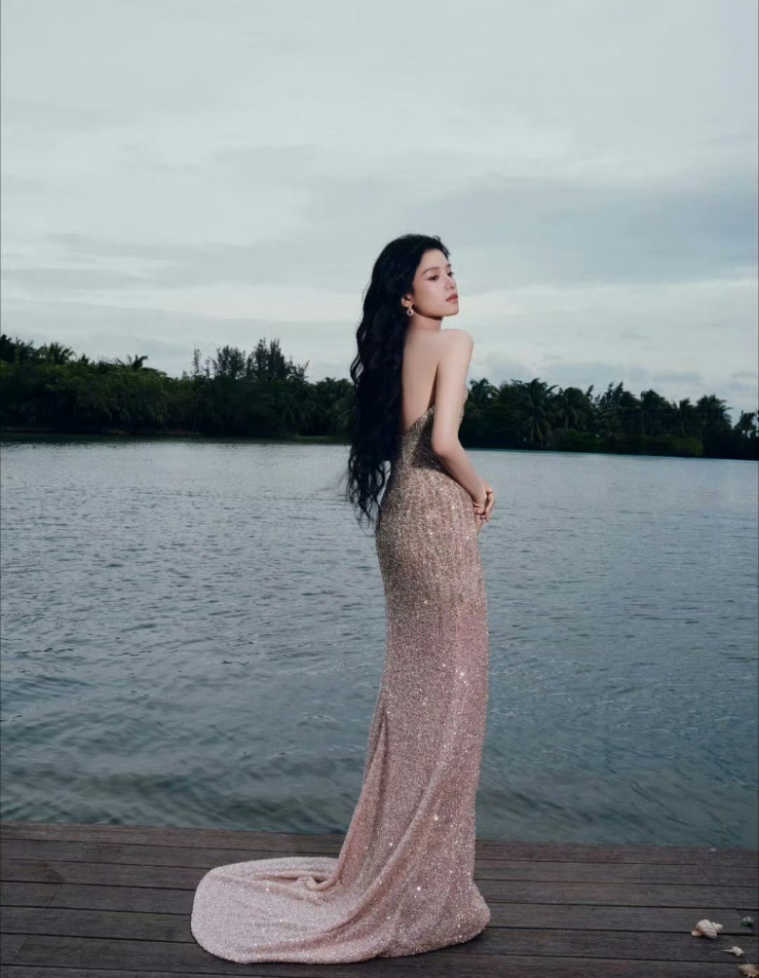 张婧仪香槟粉鱼尾裙,简直是美人鱼着陆[憧憬]婧仪宝宝出手绝!