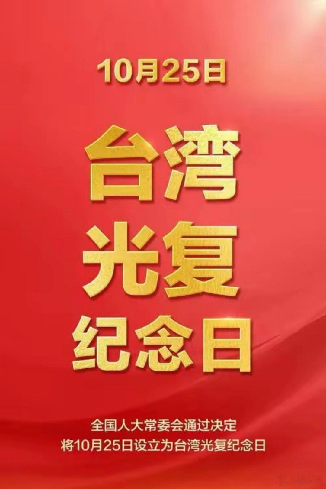 二、在台湾光复80周年之际,十四届全国人大常委会表决通过,以法律形式将10月29日设立为"台湾光复纪念日"。