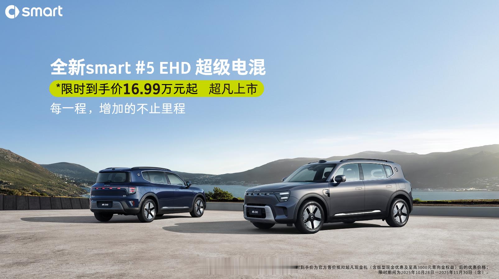 刚刚smart精灵5号EHD上市了,限时优惠价:16.99-21.99万
