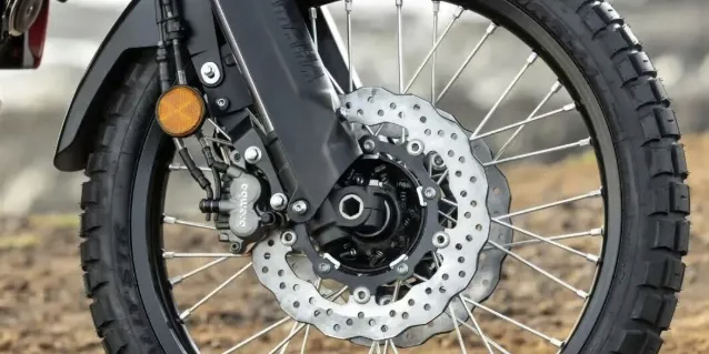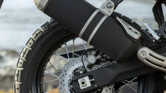 制动方面,前为对向双活塞 Brembo 配 282 mm 双浪花盘,后为 Brembo 单活塞卡钳配 245mm 单碟,原厂标配 21 英寸前轮 + 18 英寸后轮的钢丝铝圈,搭配 Pirelli Scorpion Rally STR 轮胎。