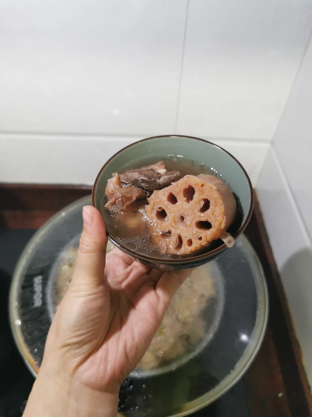 冬日与美食撞个满怀 今晚的快乐是这锅藕汤给的! 最近好想吃巨巨巨粉绵的莲藕,特别想喝筒骨藕汤,意想不到真的实现了[派对R][派对R][派对R]! 我要为湖北莲藕打电话,真的太好吃了,猛喝了两碗藕汤,吃了一条巨粉绵的莲藕,满足了!